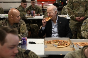 Joe Biden a mâncat pizza și și-a făcut selfie cu militarii americani din Polonia
