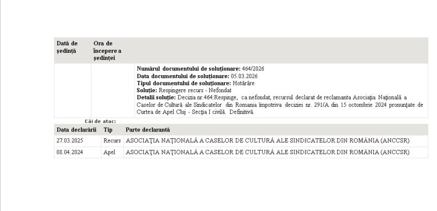În timp, au apărut semne de întrebare legate de statutul juridic al clădirii. Din punct de vedere formal, imobilul nu era intabulat clar, ceea ce a dus la interpretări diferite. Administrația locală a susținut că, în lipsa unei intabulări definitive, clădirea nu are un proprietar stabilit în mod clar și că ar trebui să revină comunității. De cealaltă parte, reprezentanții sindicali au susținut că patrimoniul fostei organizații sindicale a fost preluat legal după 1990 și că dreptul de administrare și utilizare a clădirii le aparține în continuare. Diferențele de poziție au dus la un proces între municipiu și Asociația Caselor de Cultură ale Sindicatelor din România, care a revendicat imobilul. Procesul a durat mai mulți ani și a trecut prin mai multe etape. În tot acest timp, situația clădirii a rămas blocată, fără investiții majore și fără un plan clar de dezvoltare.