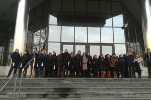 Nici 20 de minute nu a durat protestul judecătorilor de la Tribunalul Maramureș, din fața Palatului Justiției. A fost un protest sobru, tăcut. În loc de pancarte sau banderole, cei 22 de protestatari au purtat pe brațe robele. L-am întrebat pe prim-procurorul adjunct al Parchetului de pe lângă Tribunalul Maramureş, Bogdan Gabor, dacă e un protest generic față de ceea ce înseamnă modificarea Codului penal, a Codului de procedură penală şi a legilor justiţiei sau sunt lucruri punctuale care-i deranjează. ”Nu am protestat față de legile justiției, deși au fost multe lucruri care nu ne-au plăcut, dar am înțeles că asta ținea de o organizare, stabilită de parlament. Însă în coduri au apărut propuneri care lipsesc organele judiciare de instrumente specifice prin care să asigure protecţia victimelor şi identificarea infractorilor. E o chestiune care îngreunează semnificativ realizarea unei justiţii penale eficiente”. Și ca să fie pe înțelesul tuturor, Bogdan Gabor a dat un exemplu simplu de operare după modificările de la codul penal. ”Obținem un mandat de percheziție pentru țigări de contrabandă. Intrăm în casa omului unde avem informații că se află acestea și, la fața locului, găsim și grenade (chiar a fost, cândva, un astfel de caz la Sighet). Nu le putem ridica pentru că nu scrie în mandatul de percheziție. Conform modificărilor, trebuie să deschidem alt dosar pentru grenade, să luăm alt mandat de percheziție pentru ele. Credeți că, atunci când revenim, mai găsim grenadele? Asta aș vrea să înțeleagă opinia publică: faptul că sunt prevederi care pun în pericol siguranța cetățeanului. Și a noastră, până la urmă. De aceea am ieșit la protest, deși nu ne place să apărem în posturi care pot fi penibile!”.