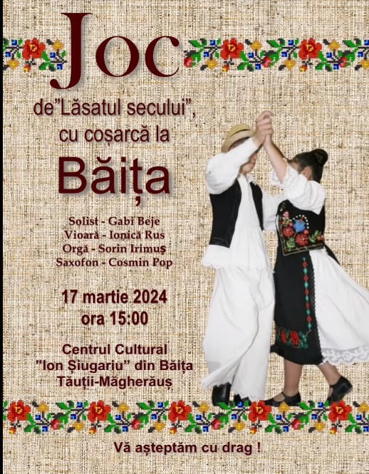 În 17 martie, de la ora 15.00, Centrul Cultural „Ion Șiugariu” Băița (Tăuții Măgherăuș) va găzdui un „Joc de lăsatul secului cu coșarcă”.