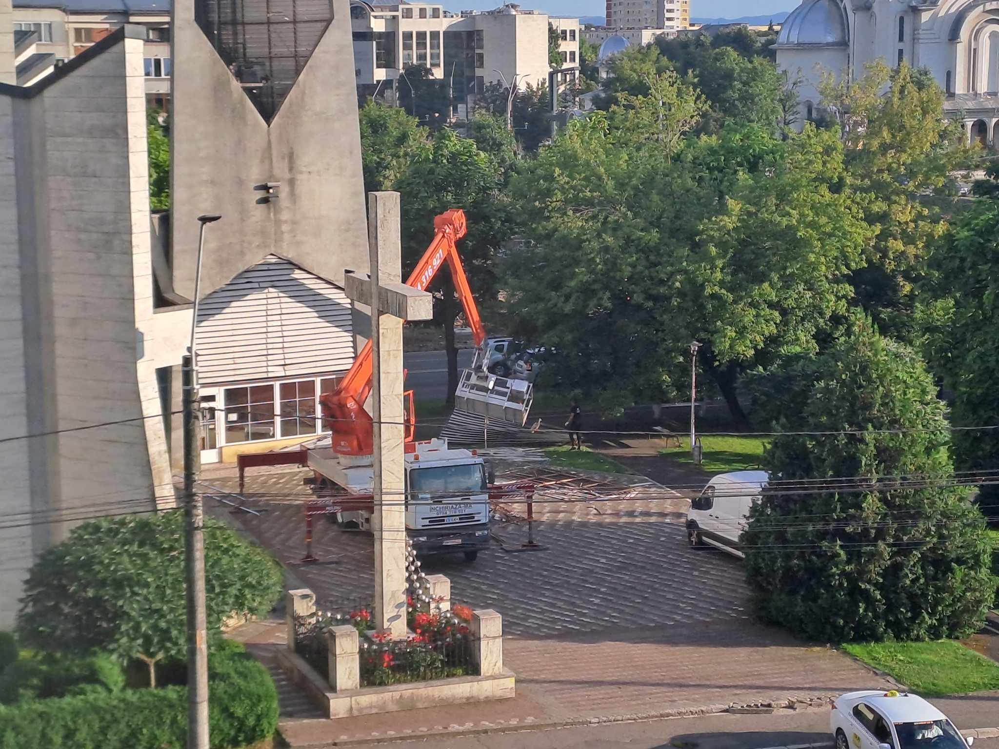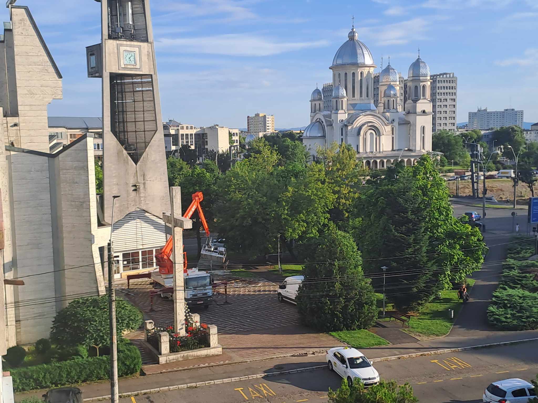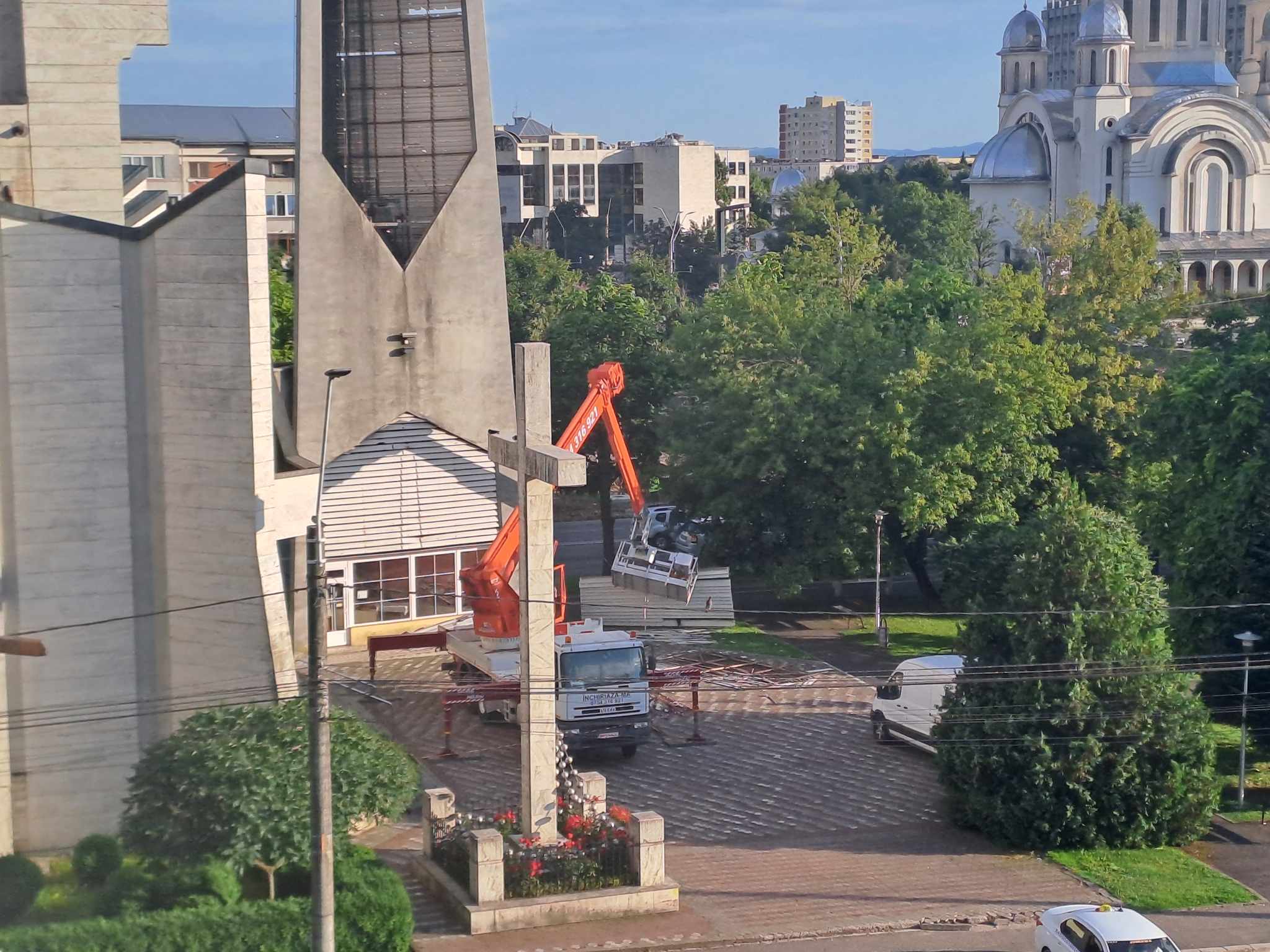 La Biserica „Sfânta Cruce” de la RFN: Se lucrează la dislocarea acelor elemente speciale cu rol decorativ de pe lăcașul de cult din cartierul Săsar