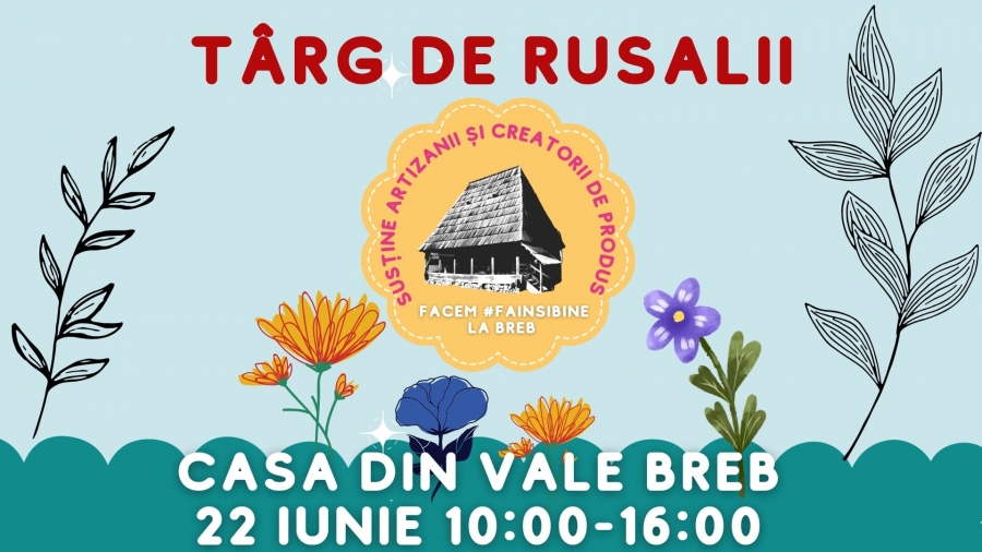 Sâmbătă, 22 iunie, în ajun de Rusalii, Asociația Culturală Casa din Vale Breb pune la cale un târg. Acesta se va desfășura între orele 10.00 și 16.00.