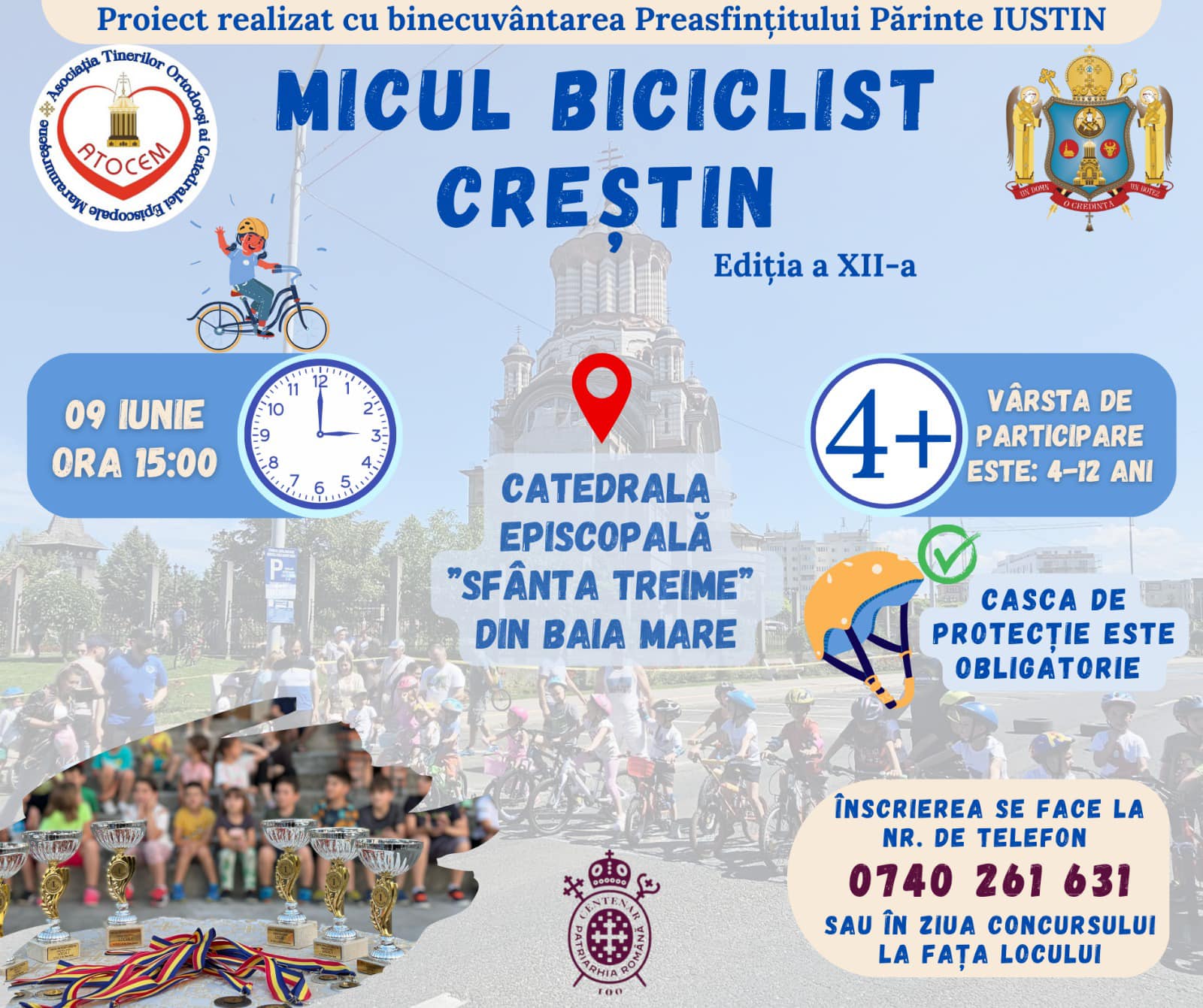 Duminică, 9 iunie, de la ora 15:00, copiii cu vârsta cuprinsă între 4 și 12 ani sunt așteptați în Curtea Catedralei Episcopale „Sfânta Treime” din Baia Mare, unde se va desfășura cea de-a XII-a ediție a concursului „Micul Biciclist Creștin”.