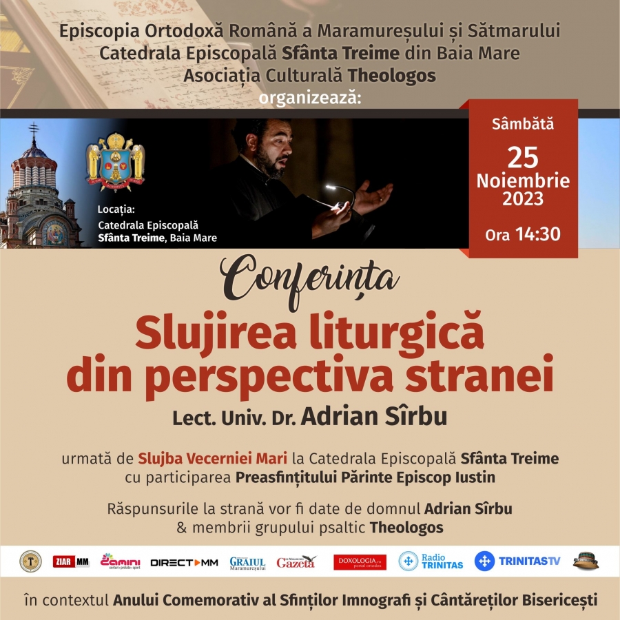 Cu binecuvântarea Preasfințitului Părinte Iustin, Episcopul Maramureșului și Sătmarului, sâmbătă, 25 noiembrie, la Catedrala Episcopală „Sfânta Treime” din Baia Mare, cu începere de la ora 14:30, se va desfășura Conferința cu tema „Slujirea liturgică din perspectiva stranei”.