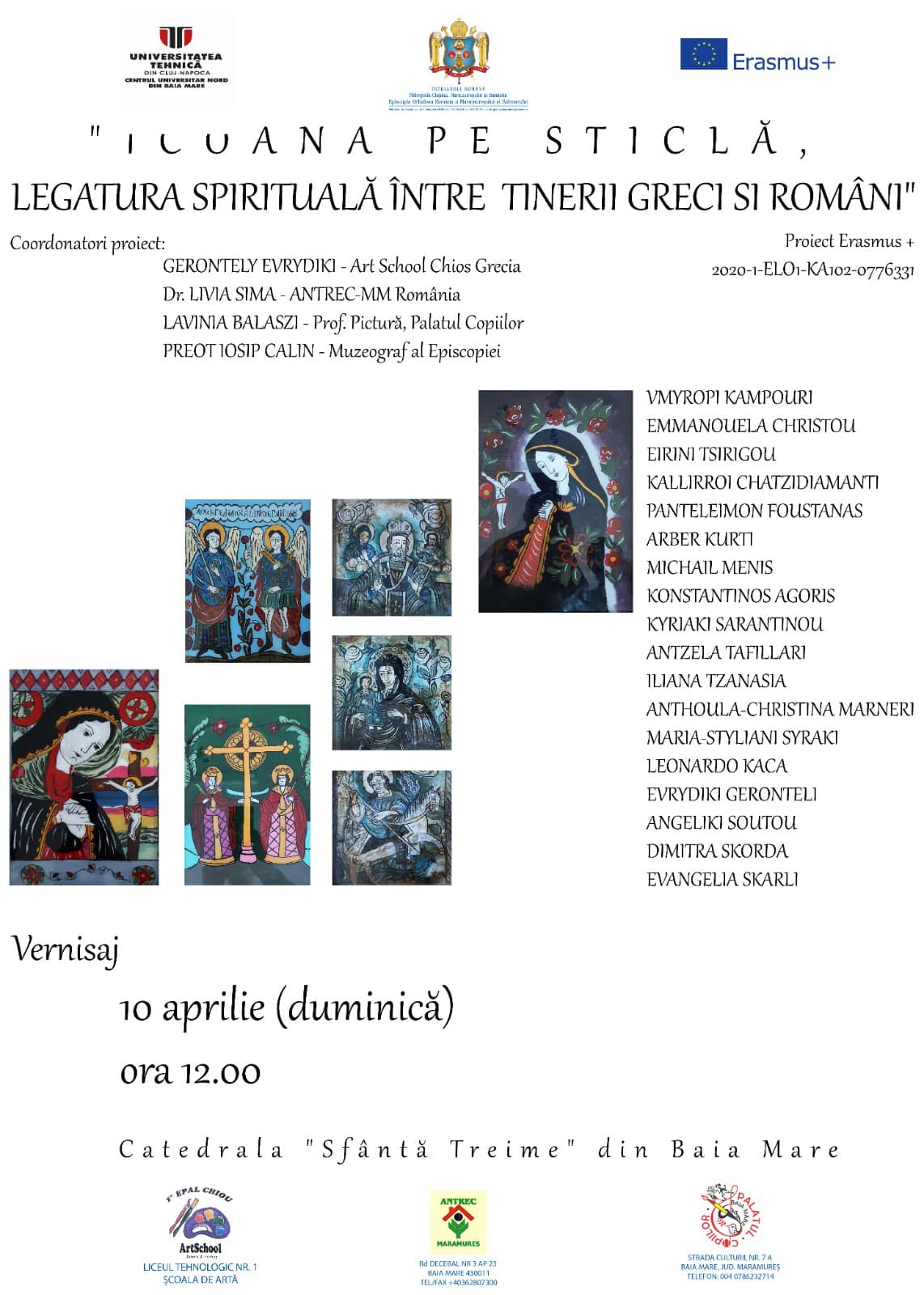 Lucrările au fost realizate în cadrul unui proiect educațional internațional desfășurat la Palatul Copiilor Baia Mare. Mai exact, 16 elevi de liceu și patru cadre didactice din Grecia au venit în Baia Mare pentru trei zile. Aceștia au învățat tehnica picturii icoanelor pe sticlă, îndrumați fiind de prof. Lavinia Maria Balaszi.