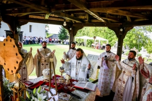Slujba a fost săvârșită la Altarul de vară din curtea bisericii cu hramul „Sfânta Cuvioasa Parascheva”, cu participarea unui sobor de preoți și diaconi, și a unui număr mare de credincioși, în frunte cu domnul Ioan Mircea Tentiș, primarul comunei Șișești. Din soborul slujitor au făcut parte Pr. Claudiu Ciascai, de la Catedrala Episcopală „Sfânta Treime” din Baia Mare, Pr. Dan Băbuț, parohul credincioșilor, Arhid. Gherasim Nap, Diac. Ioan Onuț Păcurar, referent secretariat, alături de alți preoți invitați din parohiile învecinate. Răspunsurile la Sfânta Liturghie au fost date de o parte a membrilor Grupului psaltic „Theologos” al Eparhiei condus de domnul Florian Vois.