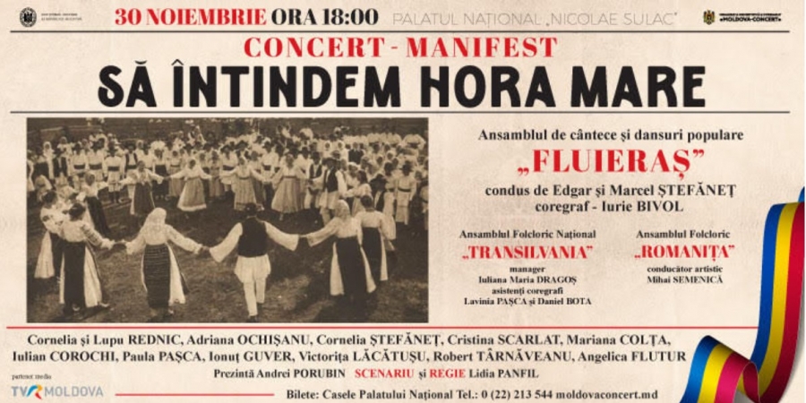 În 30 noiembrie, de la ora 18.00, la Palatul Național „Nicolae Sulac” din Chișinău, Republica Moldova, se va desfășura concertul-manifest „Să întindem hora mare”.