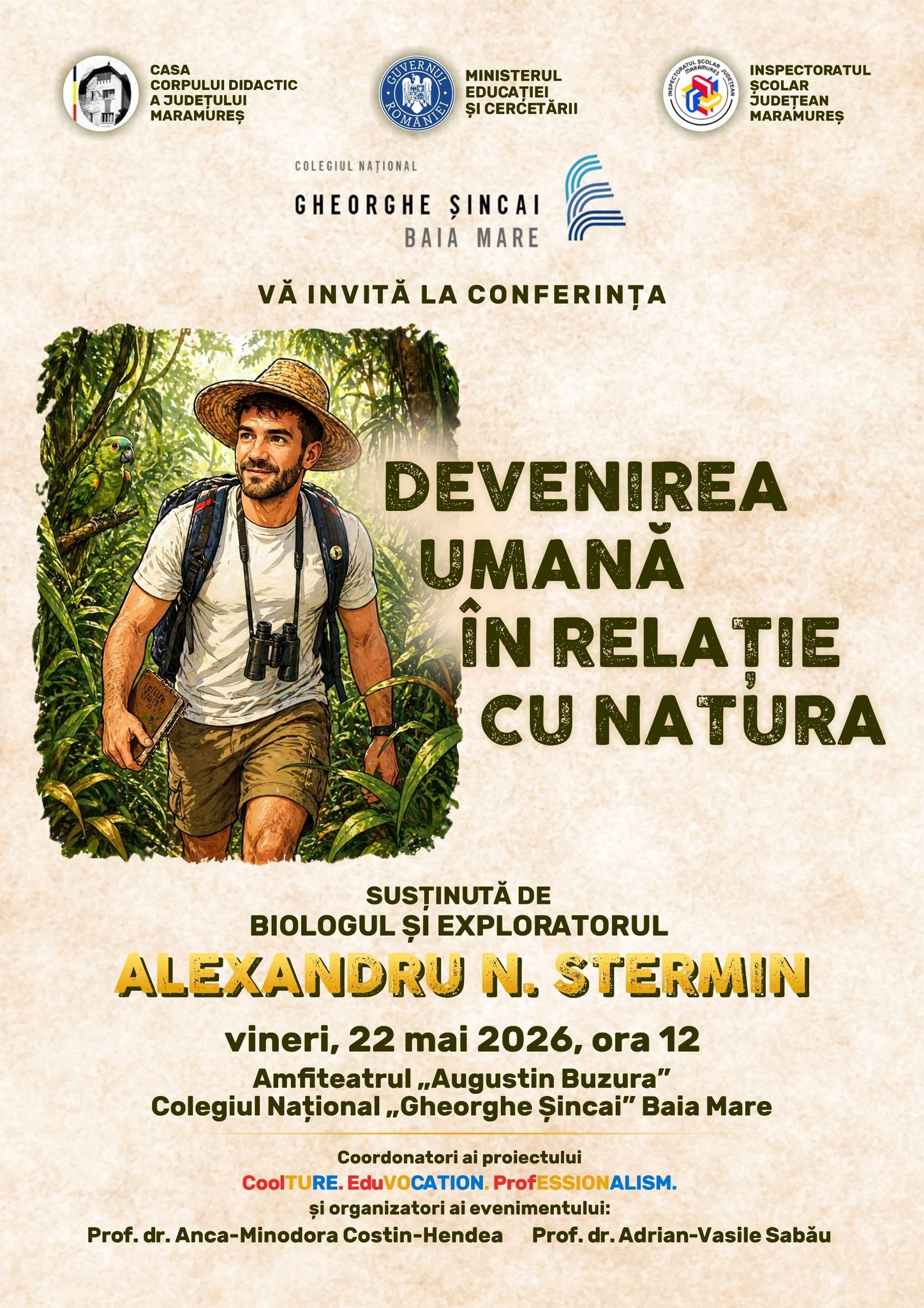 Casa Corpului Didactic Maramureș și Colegiul Național „Gheorghe Șincai” din Baia Mare, organizează o conferință dedicată relației dintre om și natură, un eveniment cu valențe educative și inspiraționale adresat elevilor și cadrelor didactice.