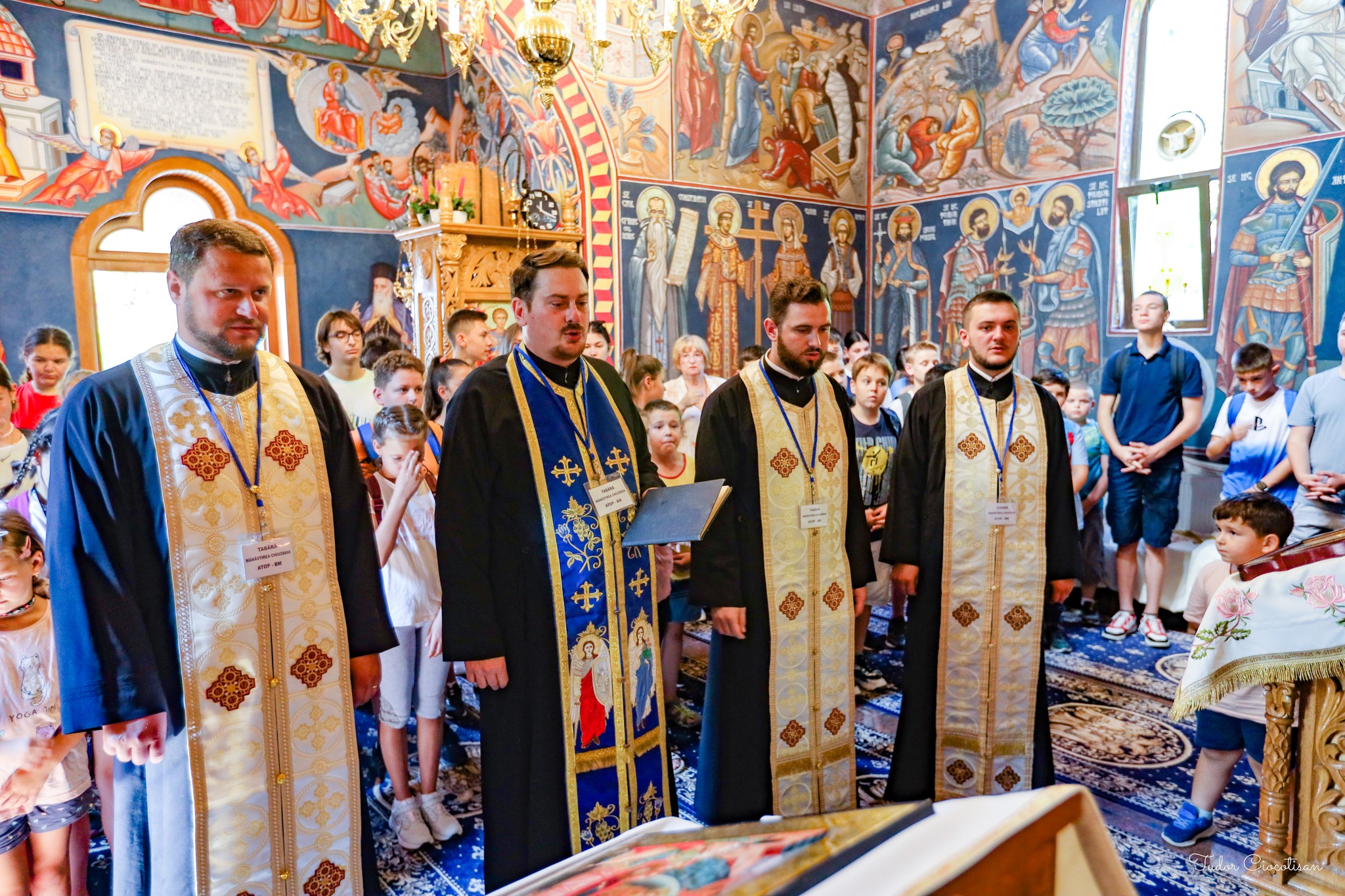 Evenimentul a debutat cu oficierea unui moment de rugăciune în biserica mănăstirii, având împreună slujitor pe preacuviosul părinte protosinghel Varlaam Coroian, starețul Mănăstirii Chiuzbaia, și, totodată, gazda desfășurării acestei tabere.