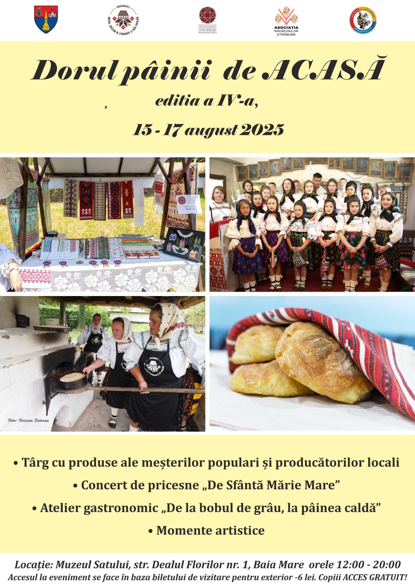 „În perioada 15-17 august vă așteptăm cu drag la cea de-a IV-a ediție a evenimentului „Dorul pâinii de ACASĂ”, care va avea loc la Muzeul Satului din Baia Mare.