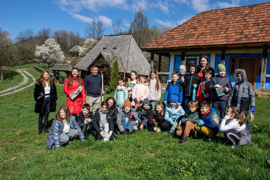 Cu mult drag, curaj și hărnicie, copiii au umplut ulițele satului de culoare și veselie, sădind pomișori și plantând floricele în gospodăriile satului de pe Dealul Florilor”, informează cei de la muzeu.