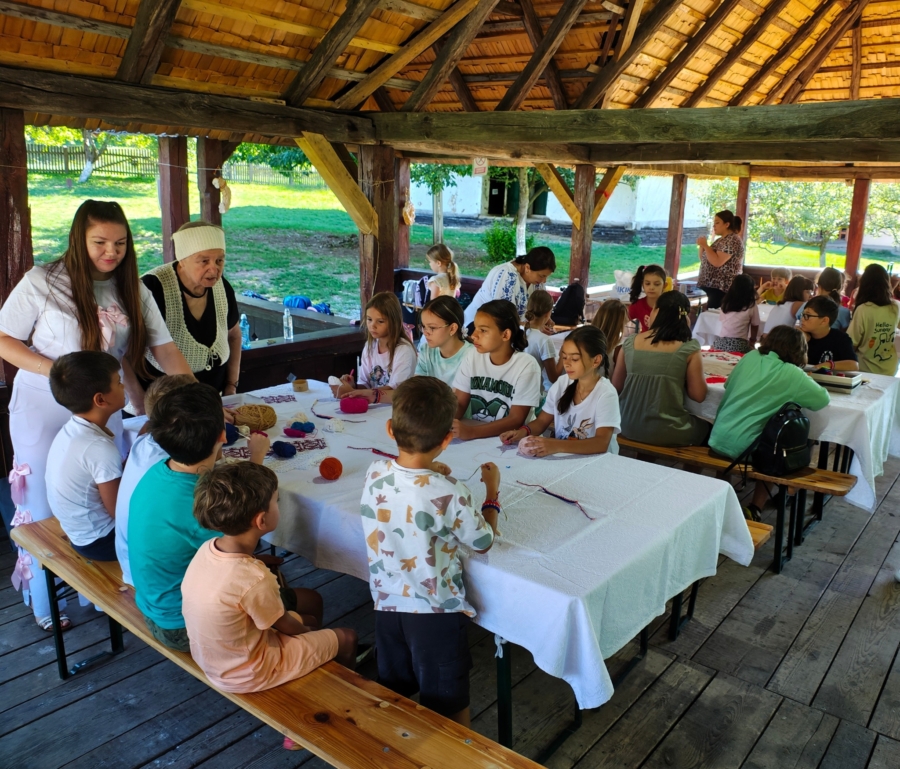 Ziua de azi, 23 iulie, a adus un nou atelier la Muzeul Satului din Baia Mare. De această dată, copilașii prezenți s-au bucurat de prezența a trei meșteri populari – Ana Mețenti, Maria Brete și Viorelia Butcure.