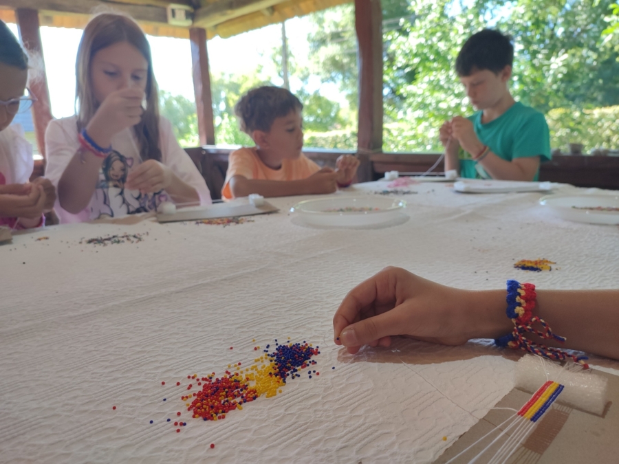 La Muzeul Satului: Copilașii au avut ocazia să își creeze propriile brățări și broșe și au descoperit din tainele croșetatului și ale împletitului