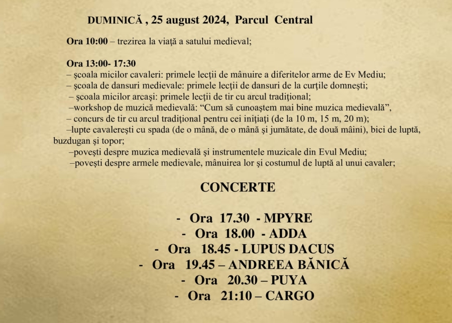 Vă invit să ne bucurăm împreună de frumusețea și autenticitatea Maramureșului etern, să pășim în lumea cavalerilor, domnițelor și meșteșugarilor, și să sărbătorim bogata noastră moștenire culturală.