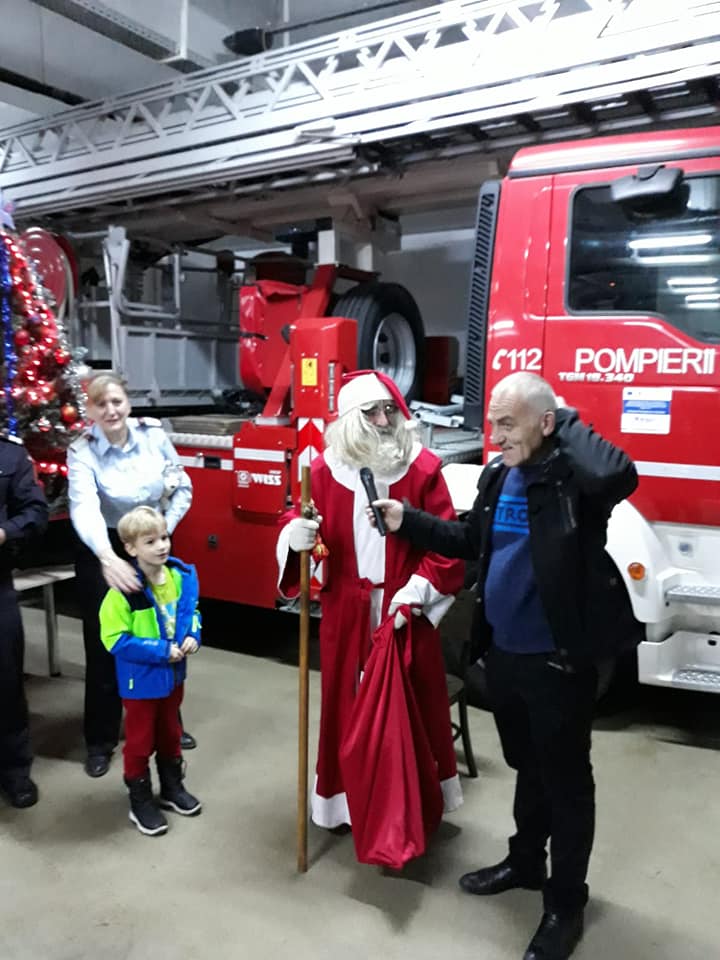 Luni, 16 decembrie, Moș Crăciun a trecut și pe la Inspectoratul pentru Situații de Urgență Maramureș. Micuții – copiii pompierilor băimăreni – l-au așteptat cu multe emoții pe bătrânelul care în acest an a sosit cu autospeciala de descarcerare. Pompierii l-au ajutat pe Moș Crăciun să coboare din autospecială și l-au invitat în garajul Detașamentului unde micuții au colindat și au recitat poezii, primind în schimb daruri.