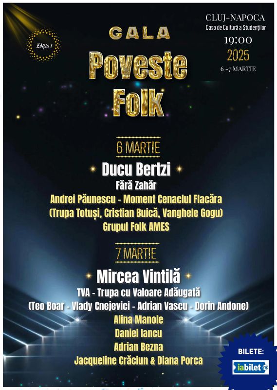 Azi și mâine (6-7 martie), Casa de Cultură a Studenţilor „Dumitru Fărcaş” din Cluj-Napoca va găzdui „Gala Poveste Folk – Ediția I”.