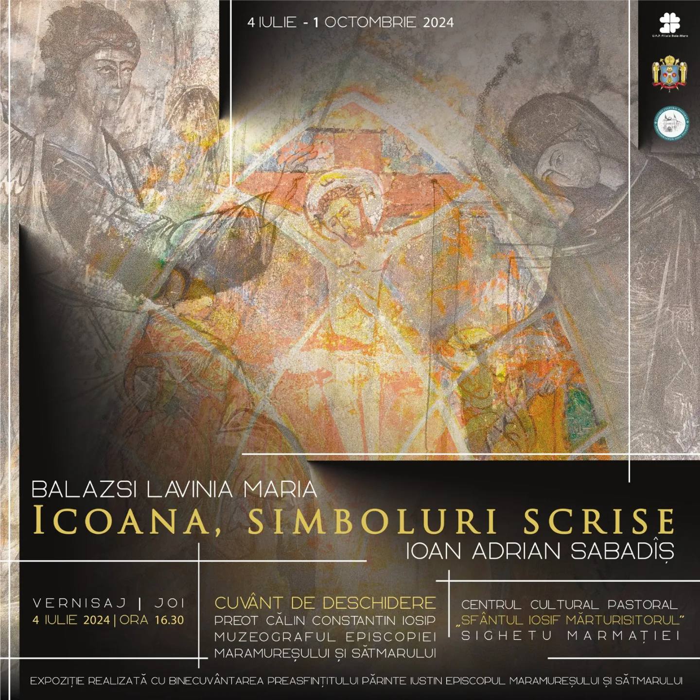 Joi, 4 iulie, de la ora 16.30, Centrul Cultural Pastoral „Sfântul Iosif Mărturisitorul” din Sighetu Marmației va găzdui vernisajul expoziției „Icoana, simboluri scrise”.