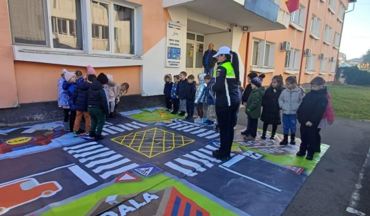 Polițiștii rutieri au desfășurat ieri o activitate la Școala „Lucian Blaga” din Baia Mare, unde, într-un joc interactiv cu copiii, au implicat regulile de circulație.