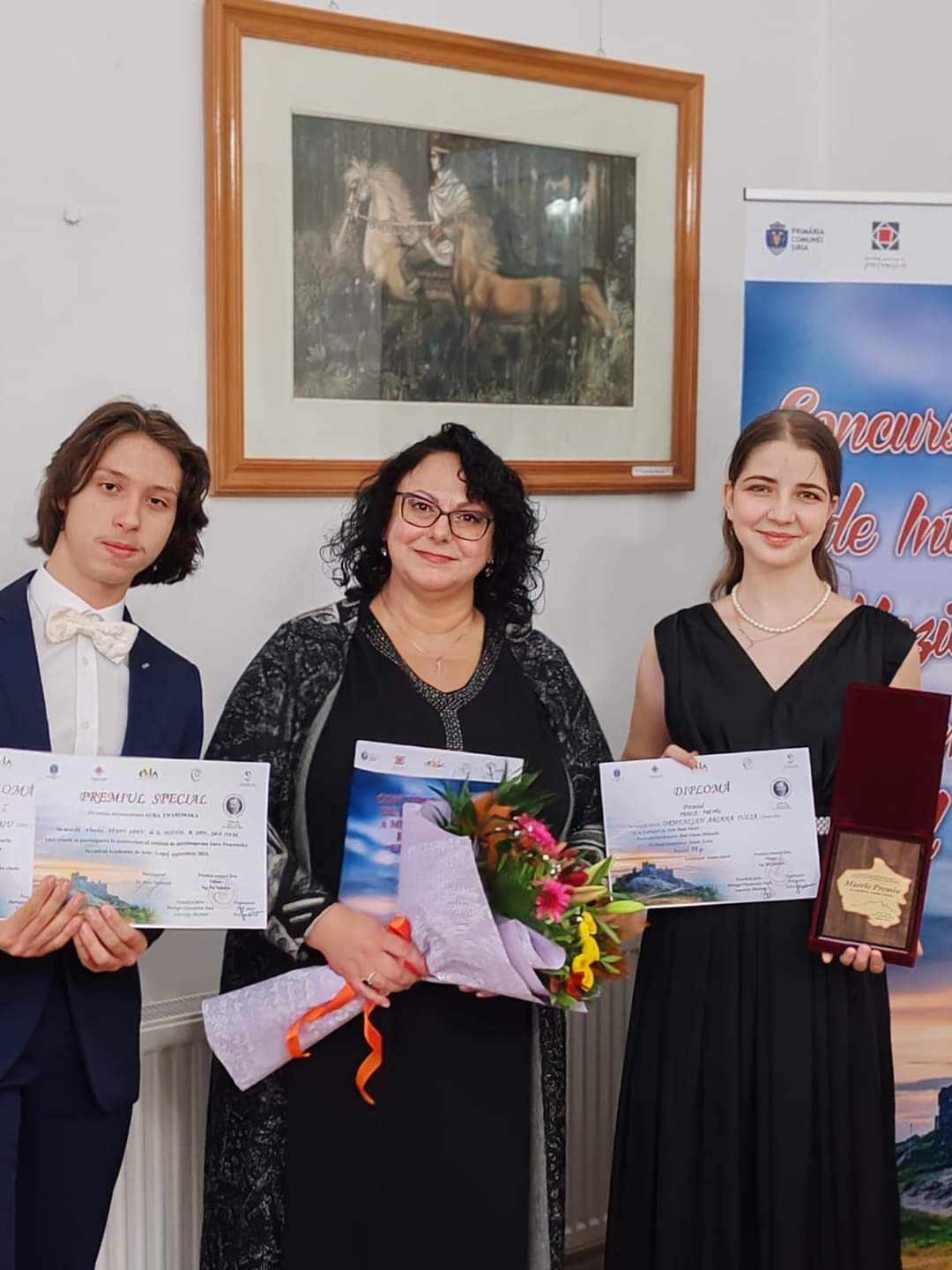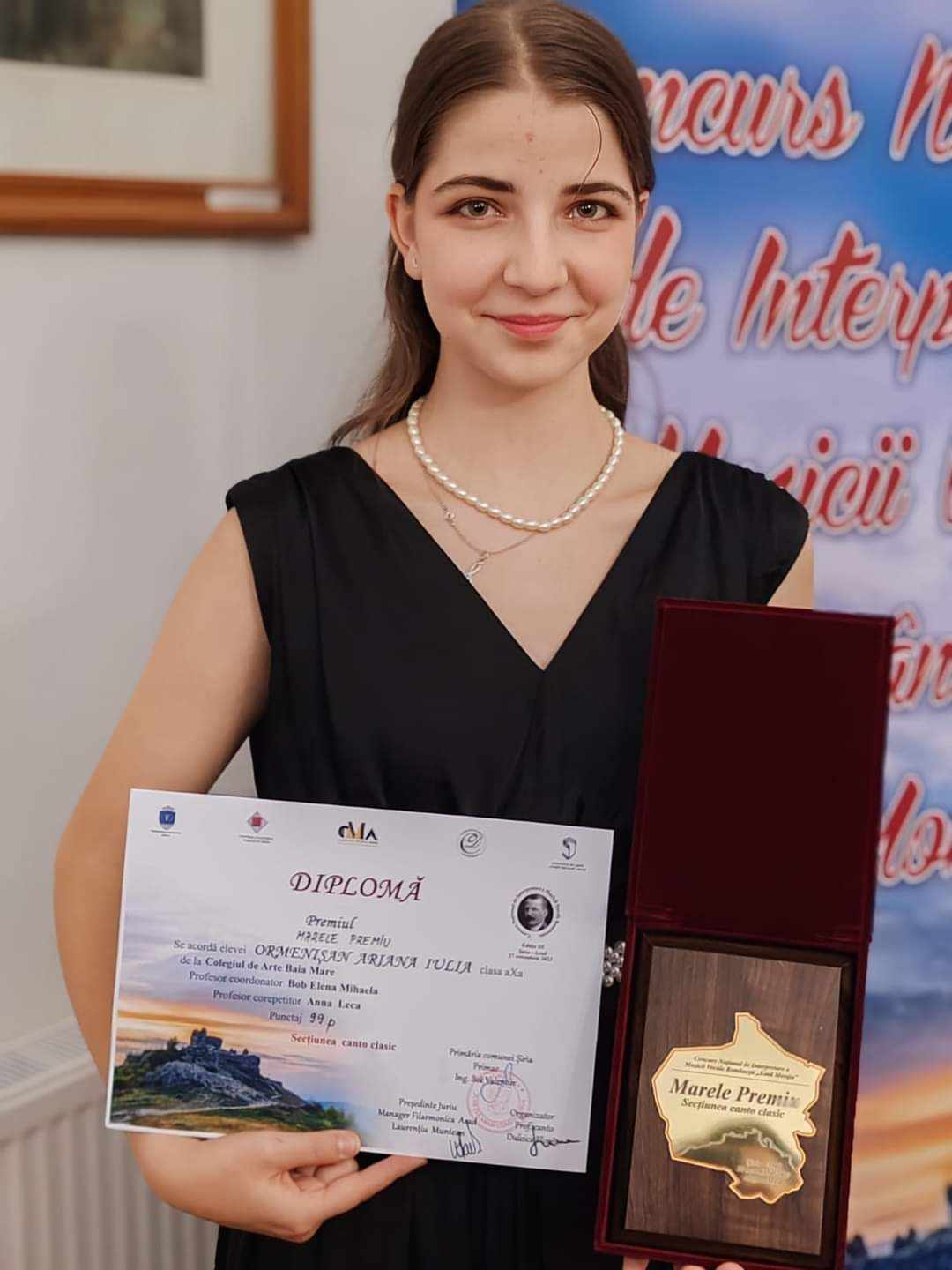 „Elevii Colegiului de Arte Baia Mare au încheiat săptămâna Școala Altfel participând la Concurs Național de Interpretare a Muzicii Vocale Românești „Emil Monția” în urma căruia aduc acasă MARELE PREMIU al Festivalului, obținut de eleva mea Ariana Ormenișan, canto clasic clasa a X-a și Premiul 1 obținut de elevul meu Dariu Băban, canto clasic clasa a IX-a, care a obținut și Premiul special oferit de Facultatea de muzică și Teatru din Timișoara, constând într-un masterclass prin amabilitatea doamnei Aura Twarowska – mezzosoprana, în cadrul Academiei de Arte Lugoj, septembrie 2024! Mulțumim frumos doamnei profesoare Anna Leca, pentru corepetiția din concurs, domnilor profesori Kaszta Norbert și Bogdan Griguţa, pentru corepetiția de acasă necesară pregătirii elevilor! Mulțumim frumos organizatorilor pentru omenie, Primăriei Comunei Șiria, juriului și nu în ultimul rând, sufletului Festivalului, doamnei profesoare Dulcica Claudia Florea, Colegiul de Arte Sabin Drăgoi Arad. Felicitări din inimă tuturor concurenților din acest festival de promovare a muzicii românești, profesorilor îndrumători și nu în ultimul rând, mulțumesc frumos părinților pentru susținerea necondiționată!”, arată profesoara Elena Mihaela Bob-Zaiceanu. Multe felicitări pentru performanță!