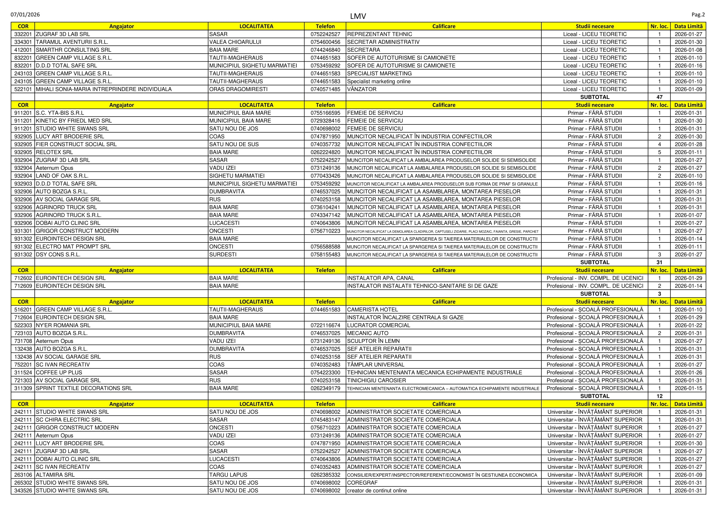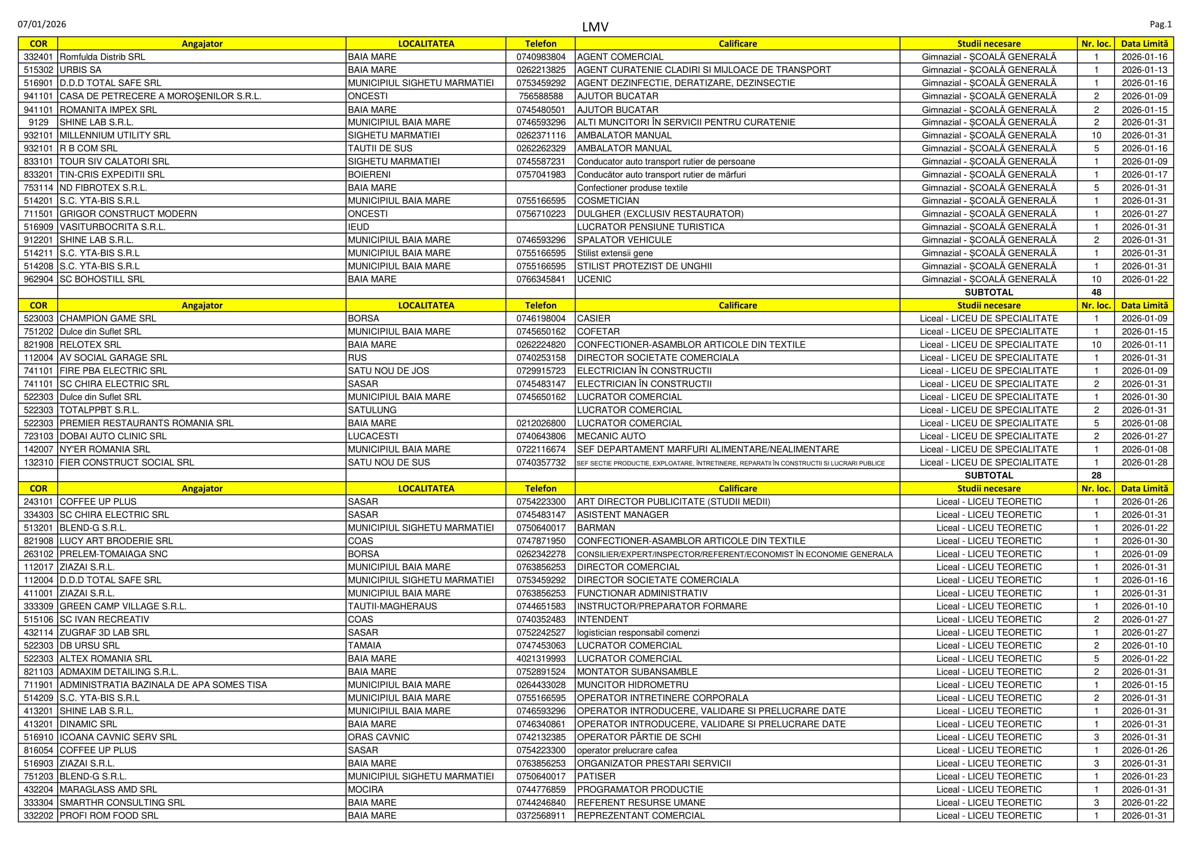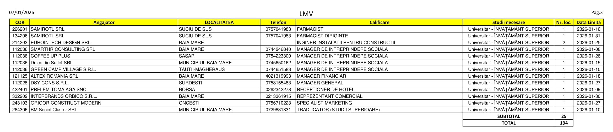 Aproape 200 de locuri de muncă se regăsesc în aceste zile pe listele AJOFM Maramureș. Oferta e una variată, se caută de la mecanici auto, electricieni și barmani până la farmaciști, coregrafi și traducători. Listele le puteți consulta mai jos.
