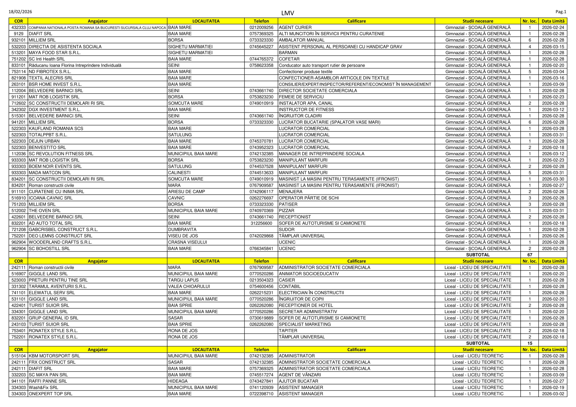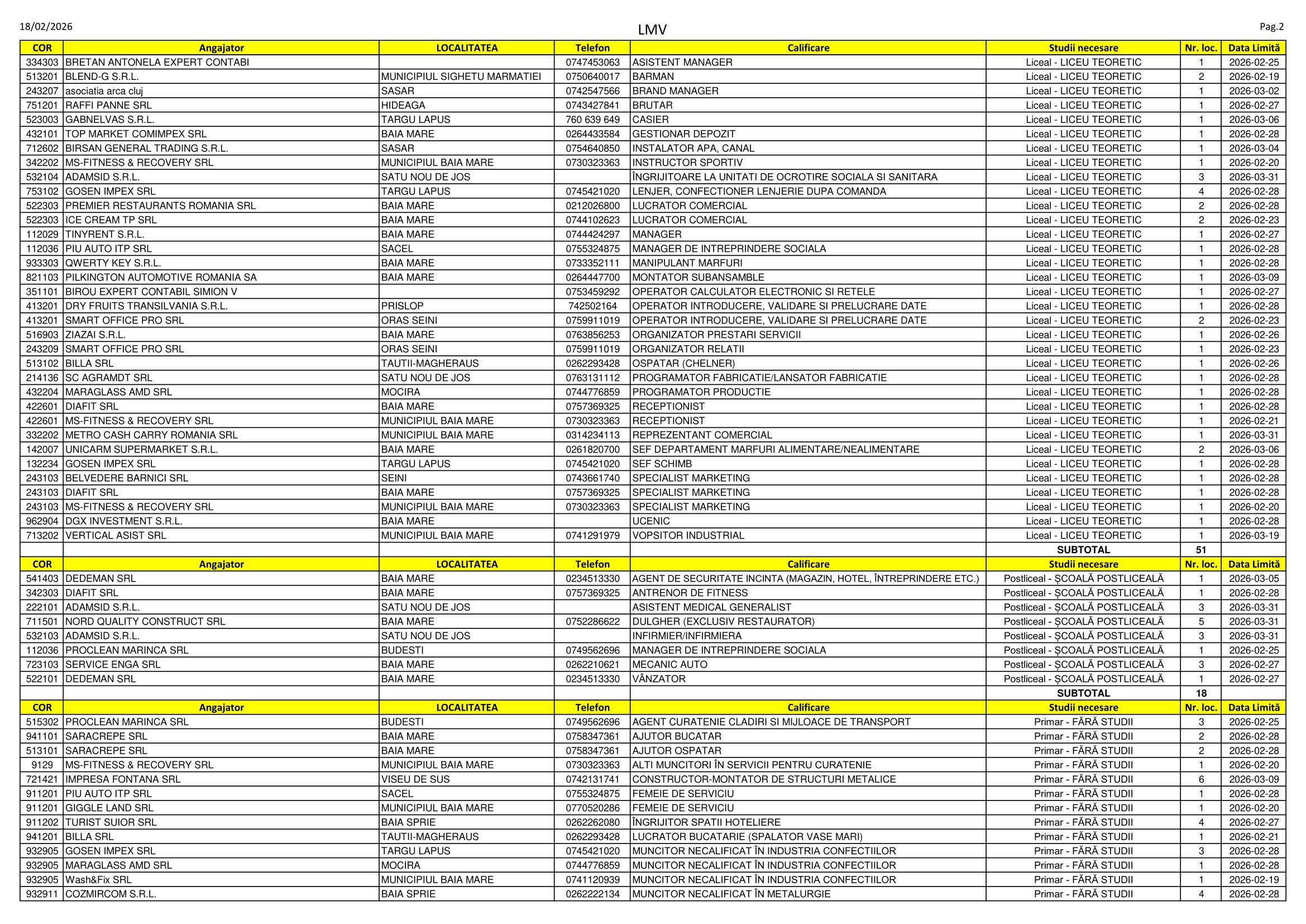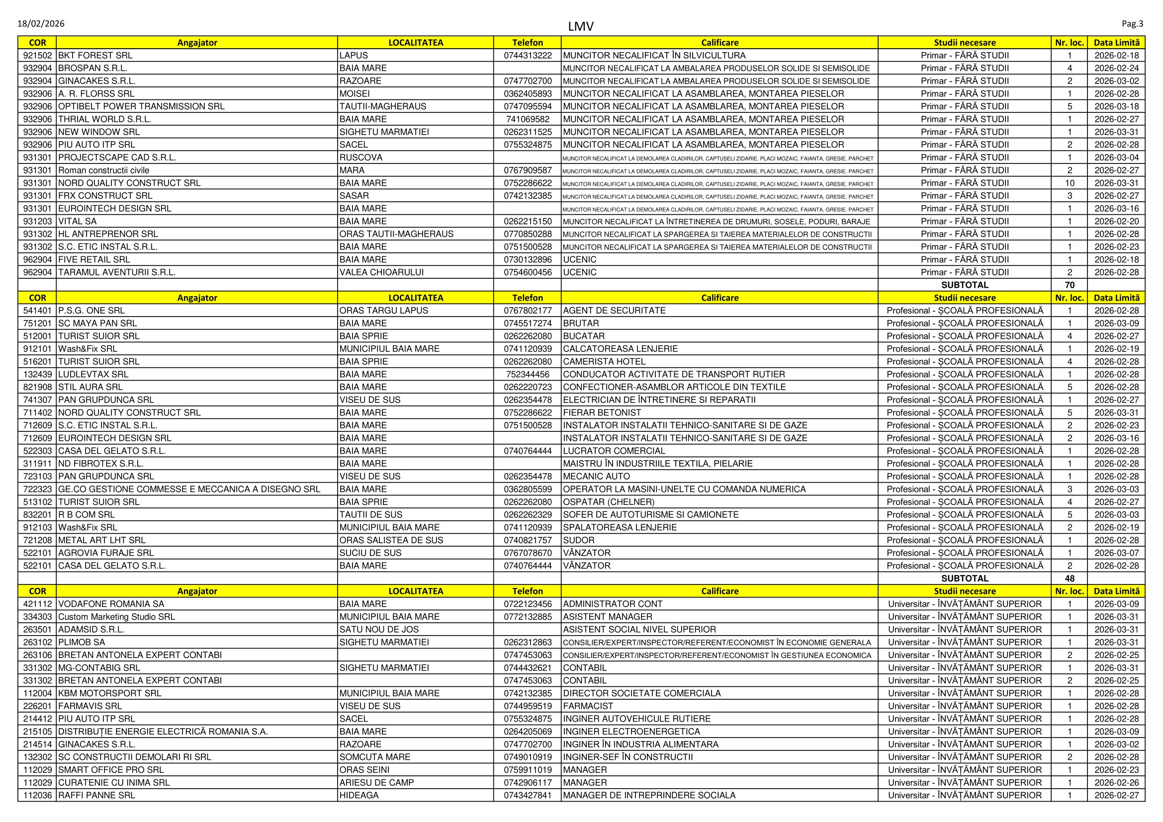 Locuri de muncă disponibile în Maramureș - 2 ore în urmă
