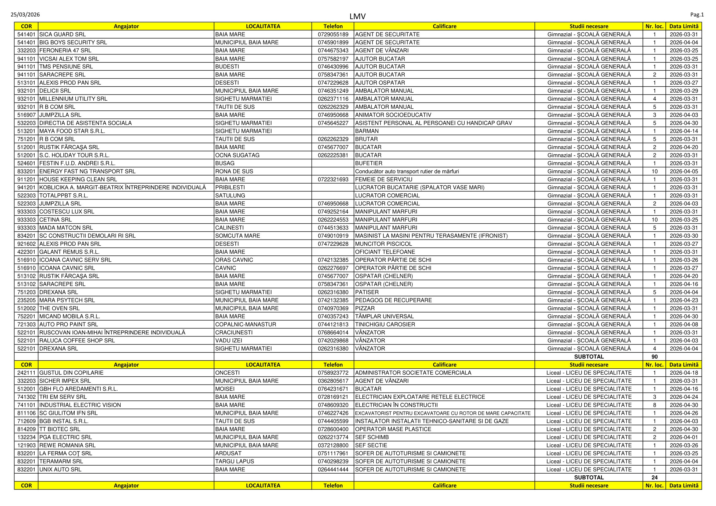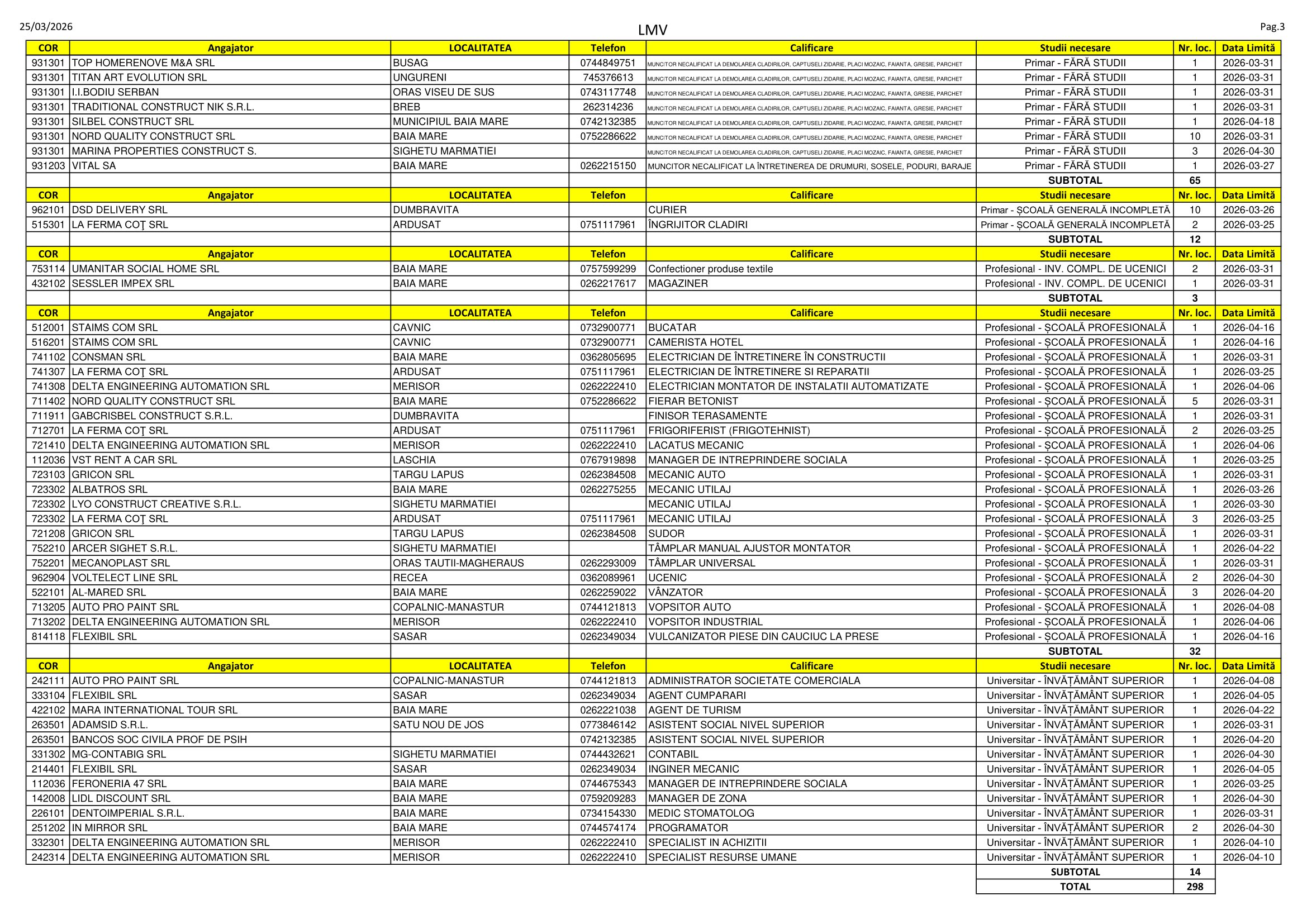 Aproape 300 de locuri de muncă sunt disponibile în aceste zile pe listele AJOFM Maramureș. Se caută de la dulgheri, îngrijitori de animale și casieri până la agenți de turism, asistenți medicali și contabili. Listele pot fi consultate mai jos.
