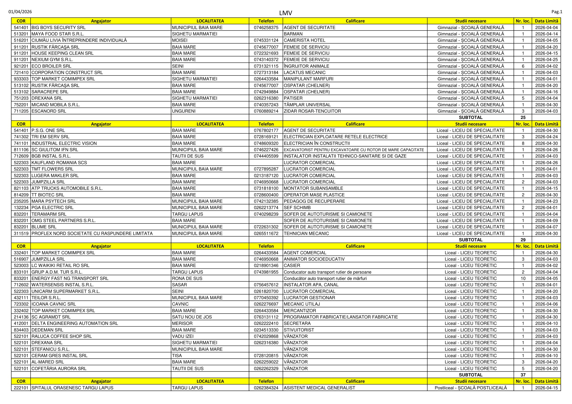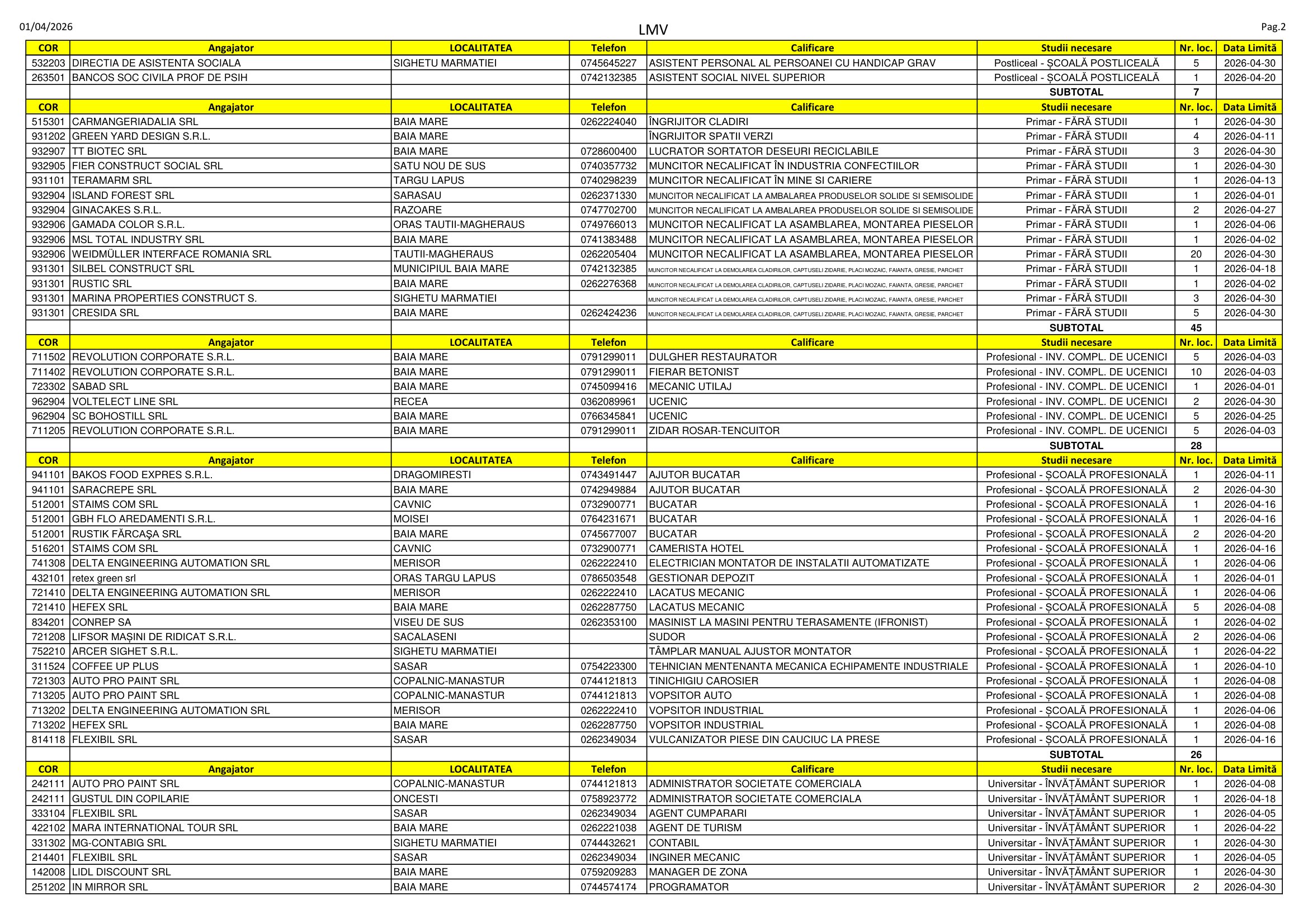Locuri de muncă disponibile în Maramureș - 2 ore în urmă