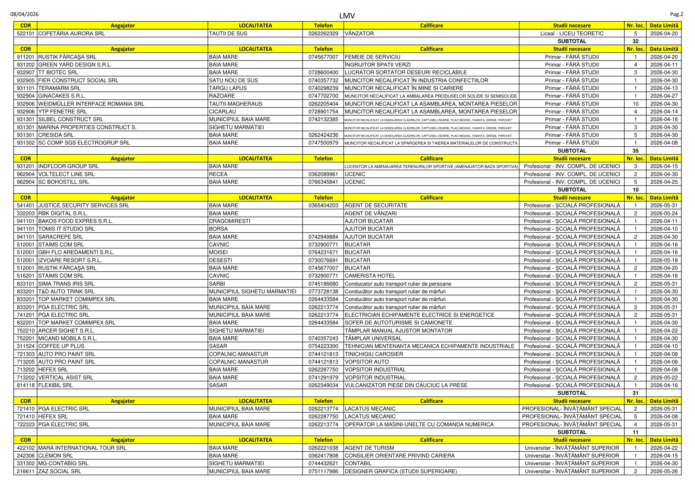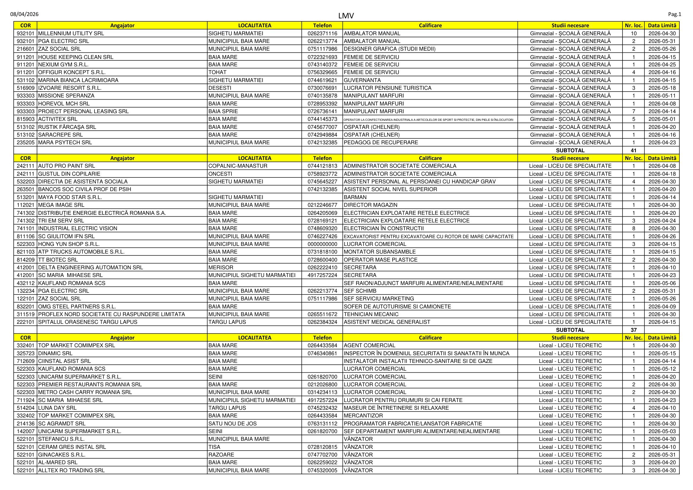 Locuri de muncă disponibile în Maramureș - 2 ore în urmă
