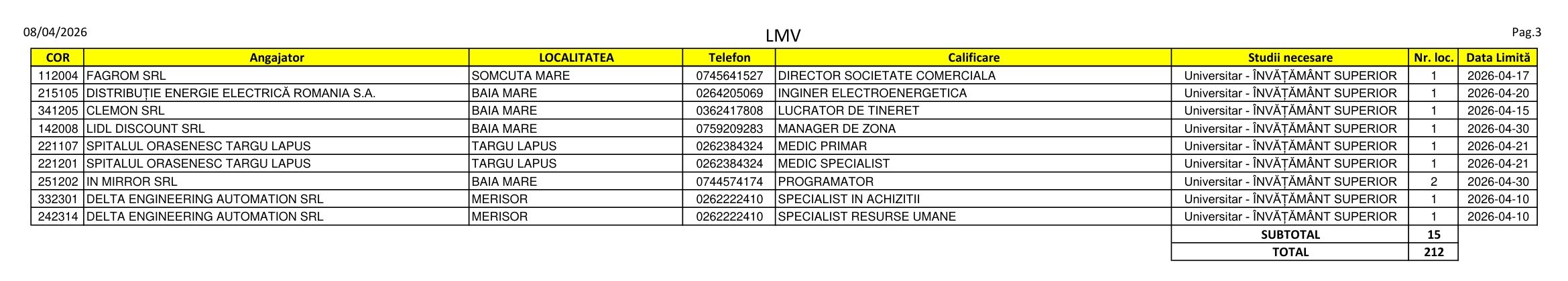 Peste 200 de locuri de muncă sunt disponibile în aceste zile pe listele AJOFM Maramureș. Se caută de la secretare, excavatoriști, tâmplari, vopsitori și agenți de securitate până la medici, programatori, ingineri și economiști. Listele detaliate le puteți consulta mai jos.