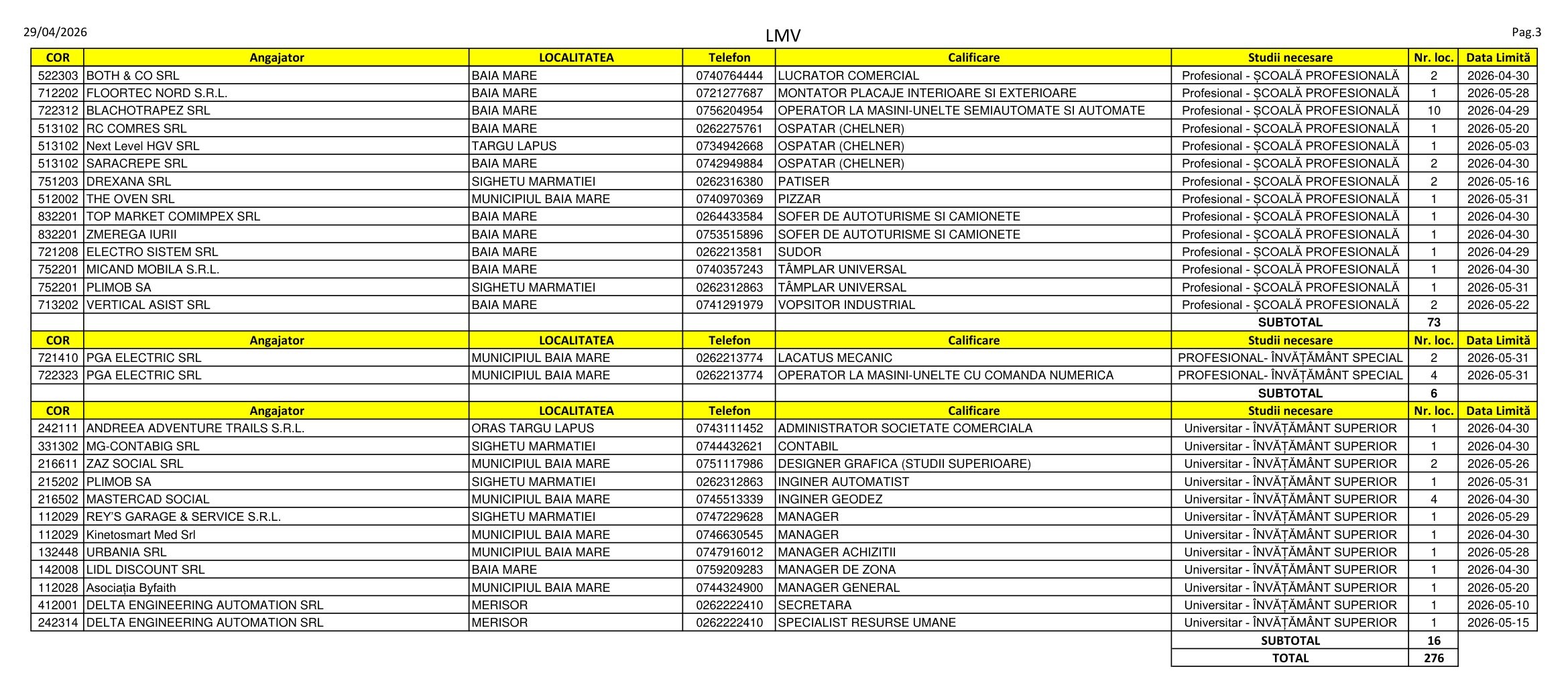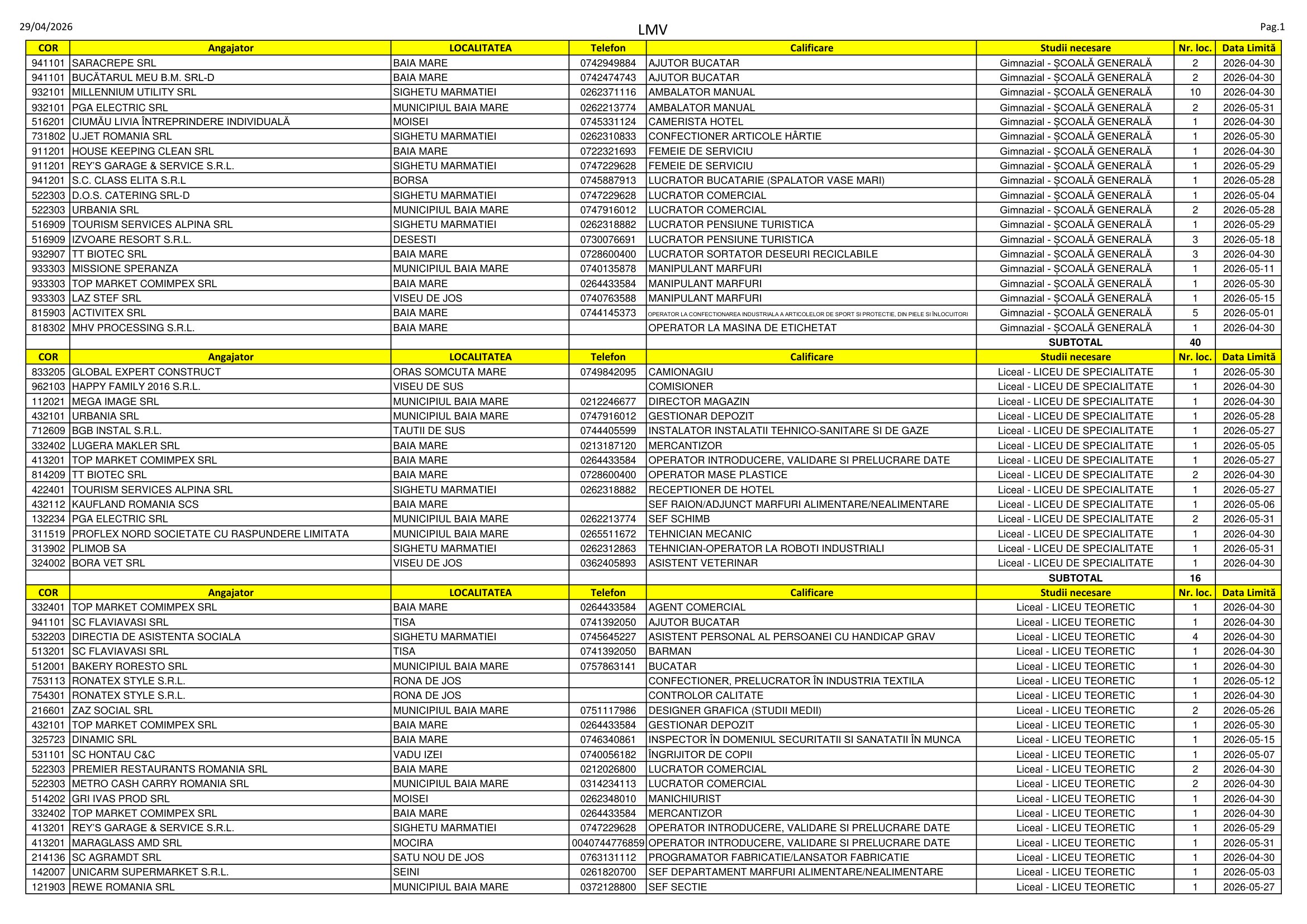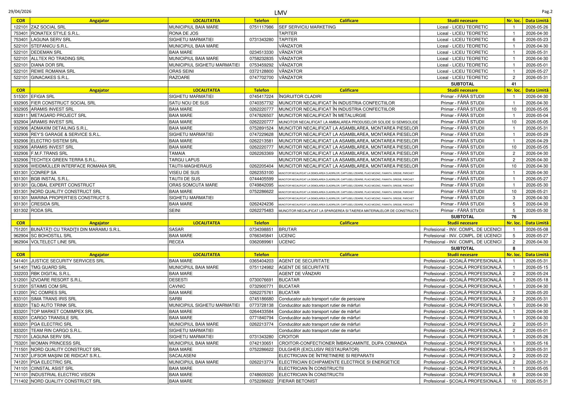 Locuri de muncă disponibile în Maramureș