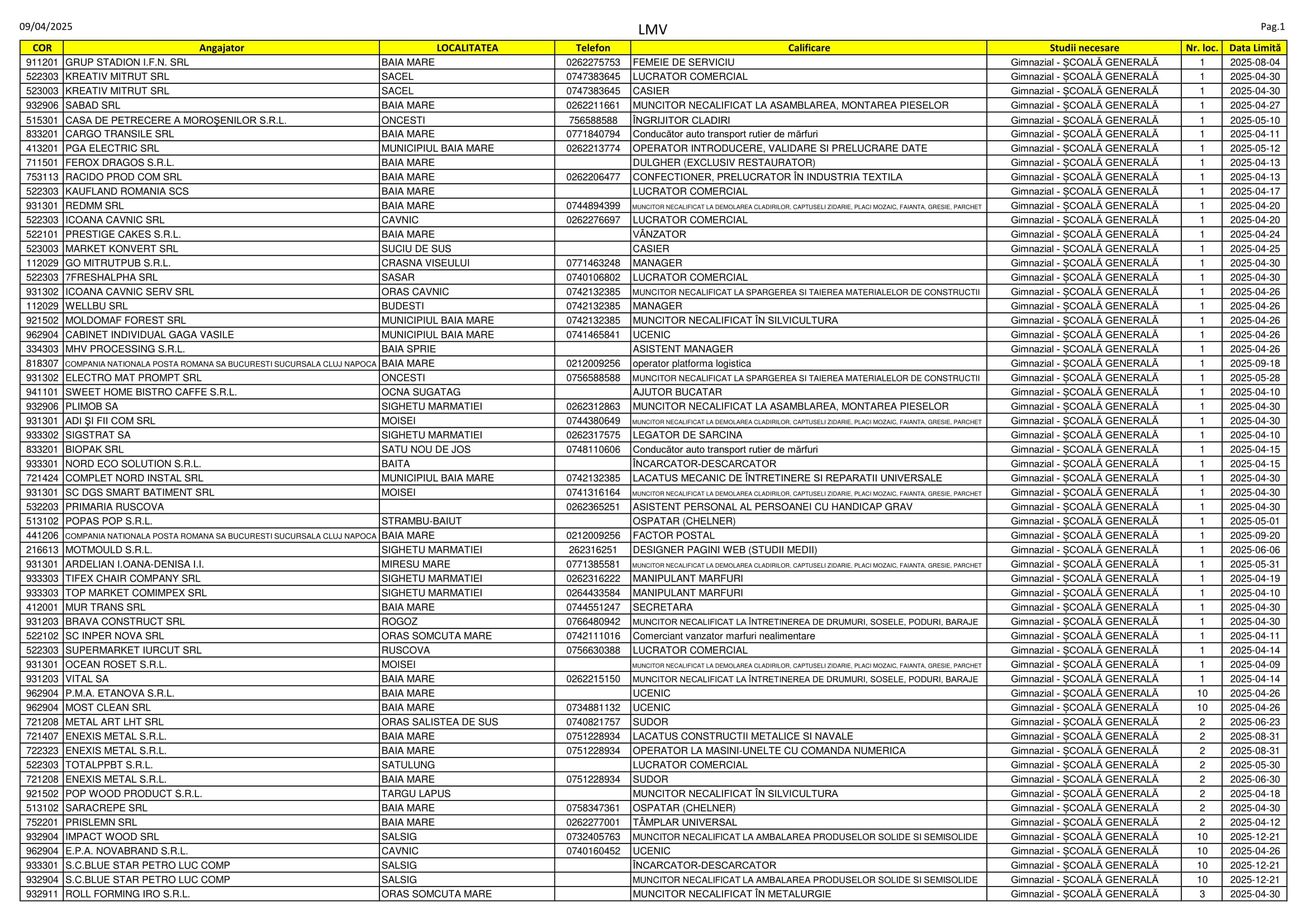 Pe listele AJOFM Maramureș se numără 458 de locuri de muncă vacante în aceste zile. Se caută de la casieri, poștași și ospătari până la proiectanți de sisteme informatice, agenți imbiliari și consilieri juridici. Listele le puteți consulta mai jos.