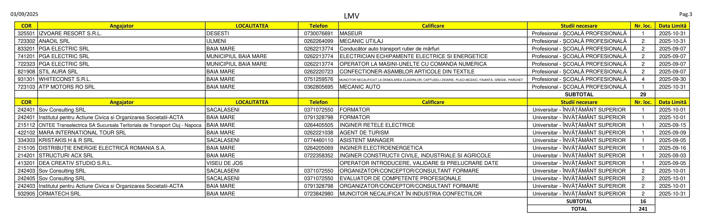 241 de locuri de muncă sunt disponibile, în aceste zile, pe listele AJOFM Maramureș. Se caută de la șoferi, vânzători și ospătari până la agenți de turism, ingineri și evaluatori de competențe profesionale. Listele le puteți consulta mai jos.