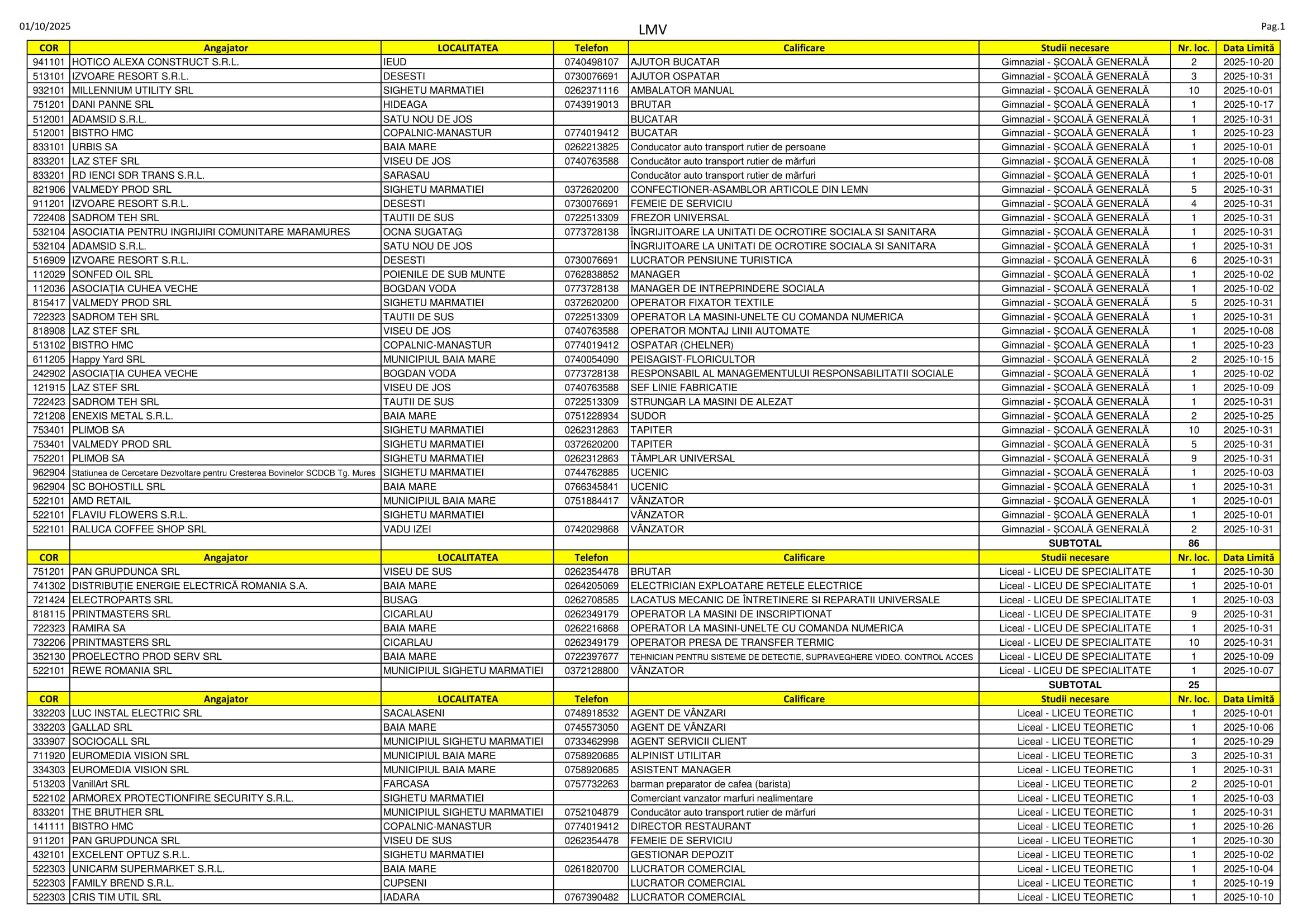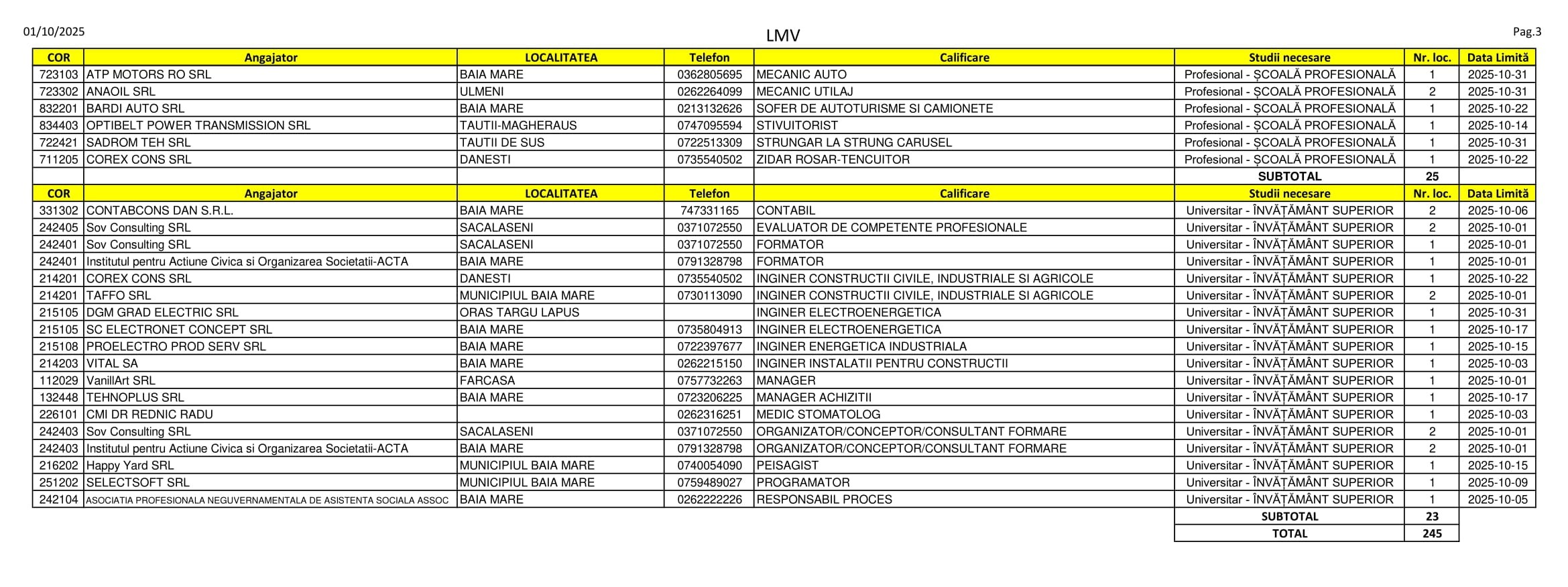 245 de locuri de muncă disponibile se numără pe listele AJOFM Maramureș. Se caută de la frezori, strungari, vânzători și alpiniști utilitari până la programatori, stomatologi și contabili. Listele le puteți consulta mai jos.