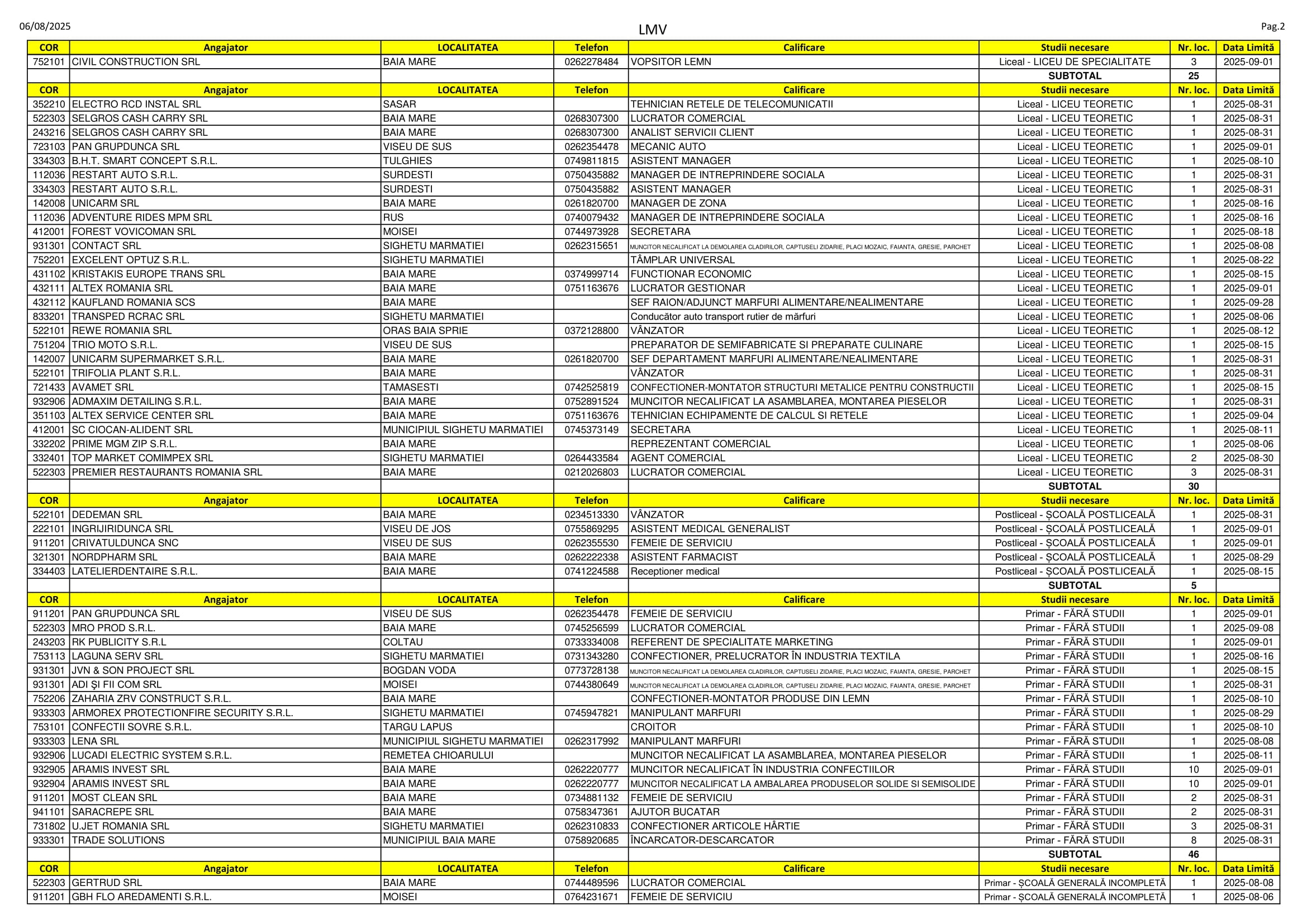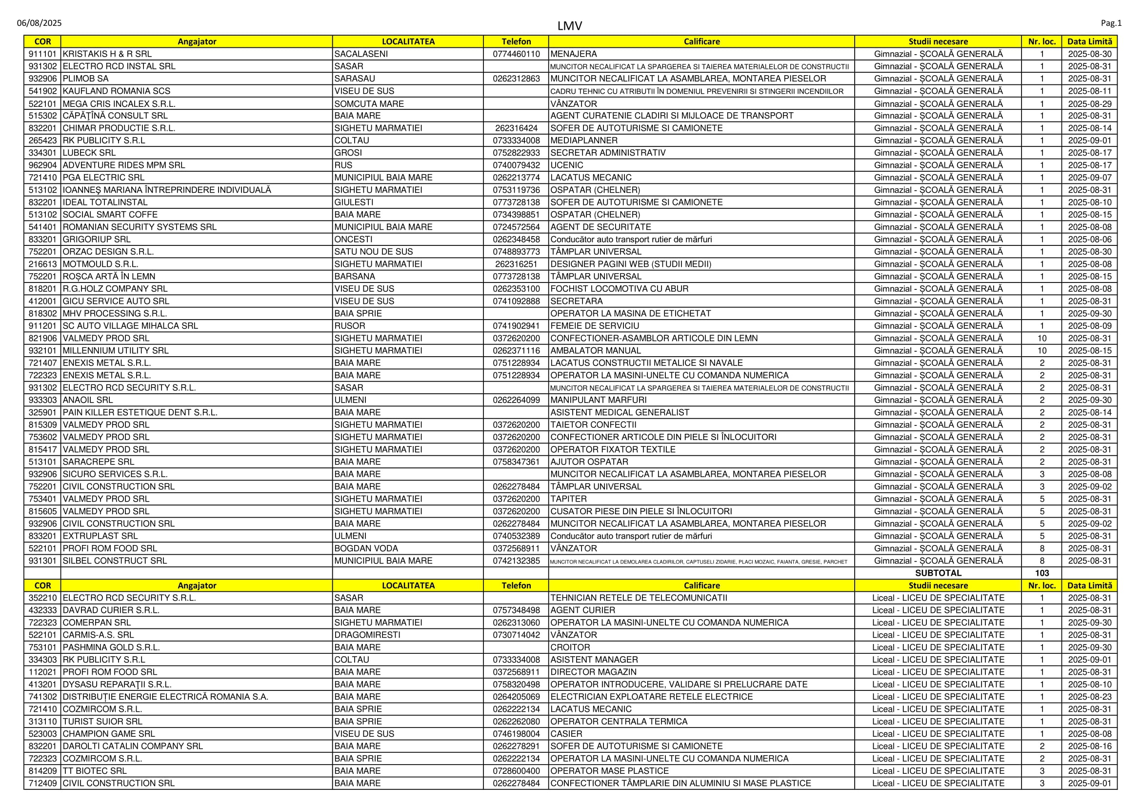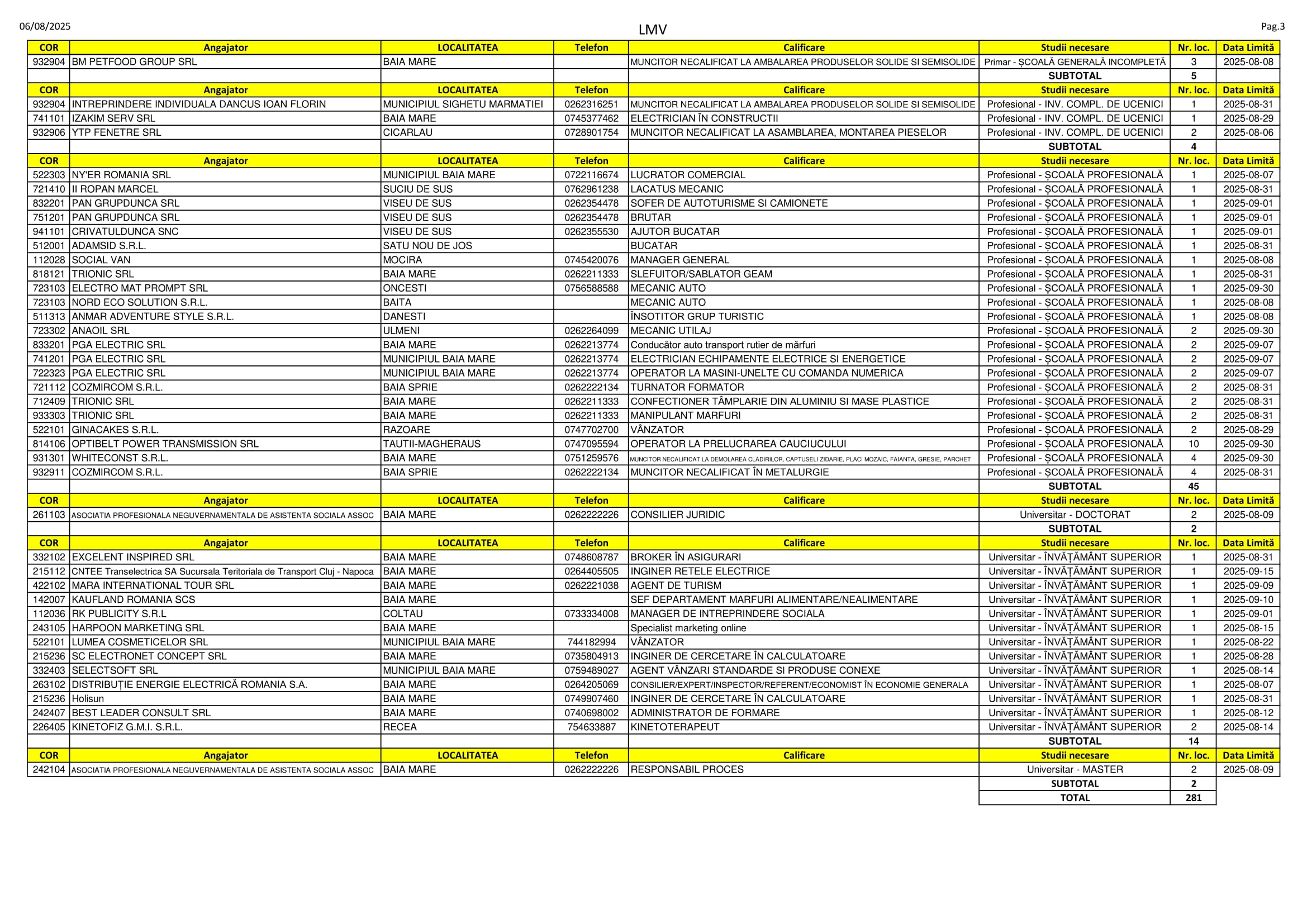 281 de locuri de muncă vacante se regăsesc în aceste zile pe listele AJOFM Maramureș. Se caută de la lăcătuși, fochiști și manipulanți de mărfuri până la brokeri, kinetoterapeuți și ingineri. Listele le puteți consulta mai jos.