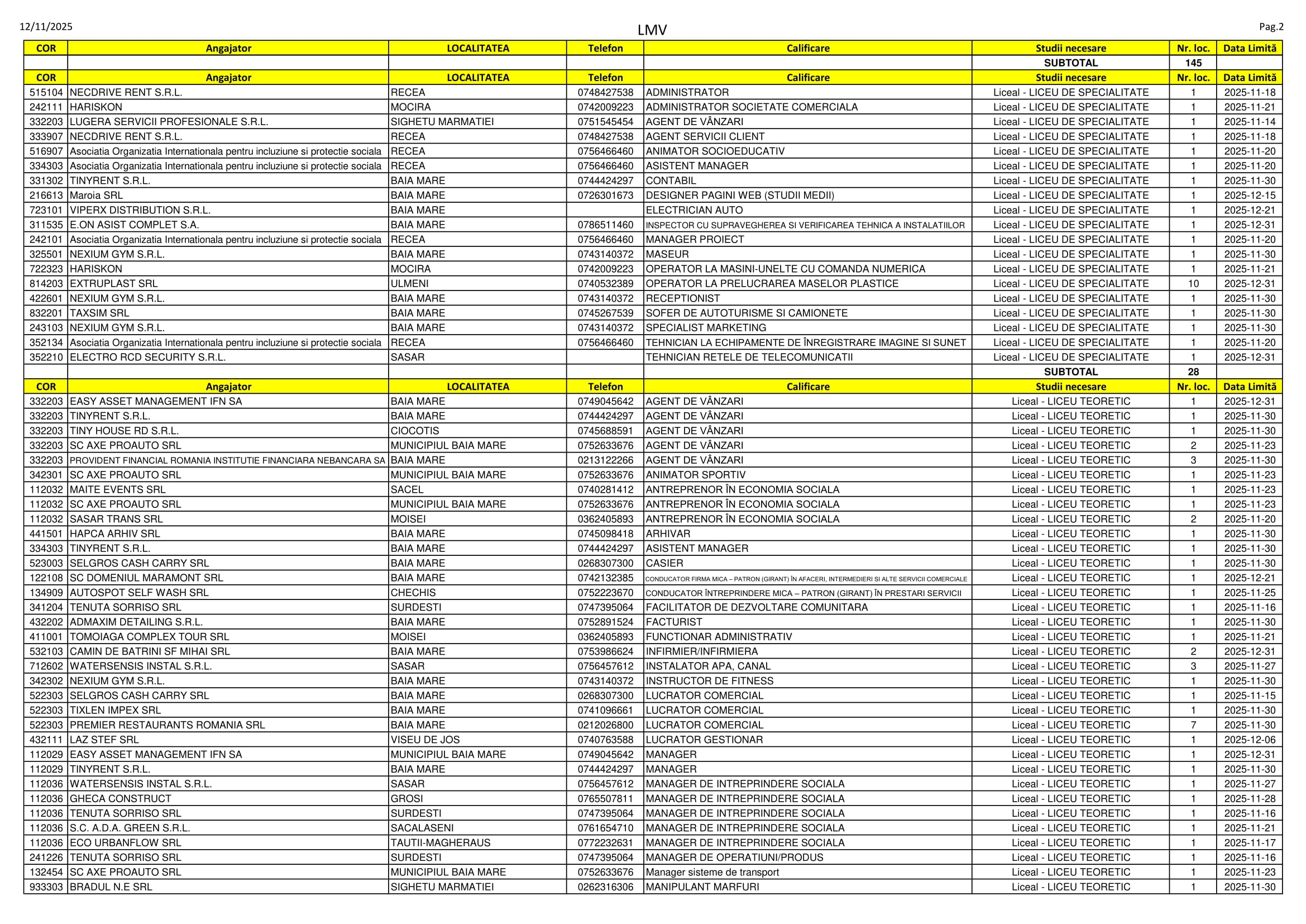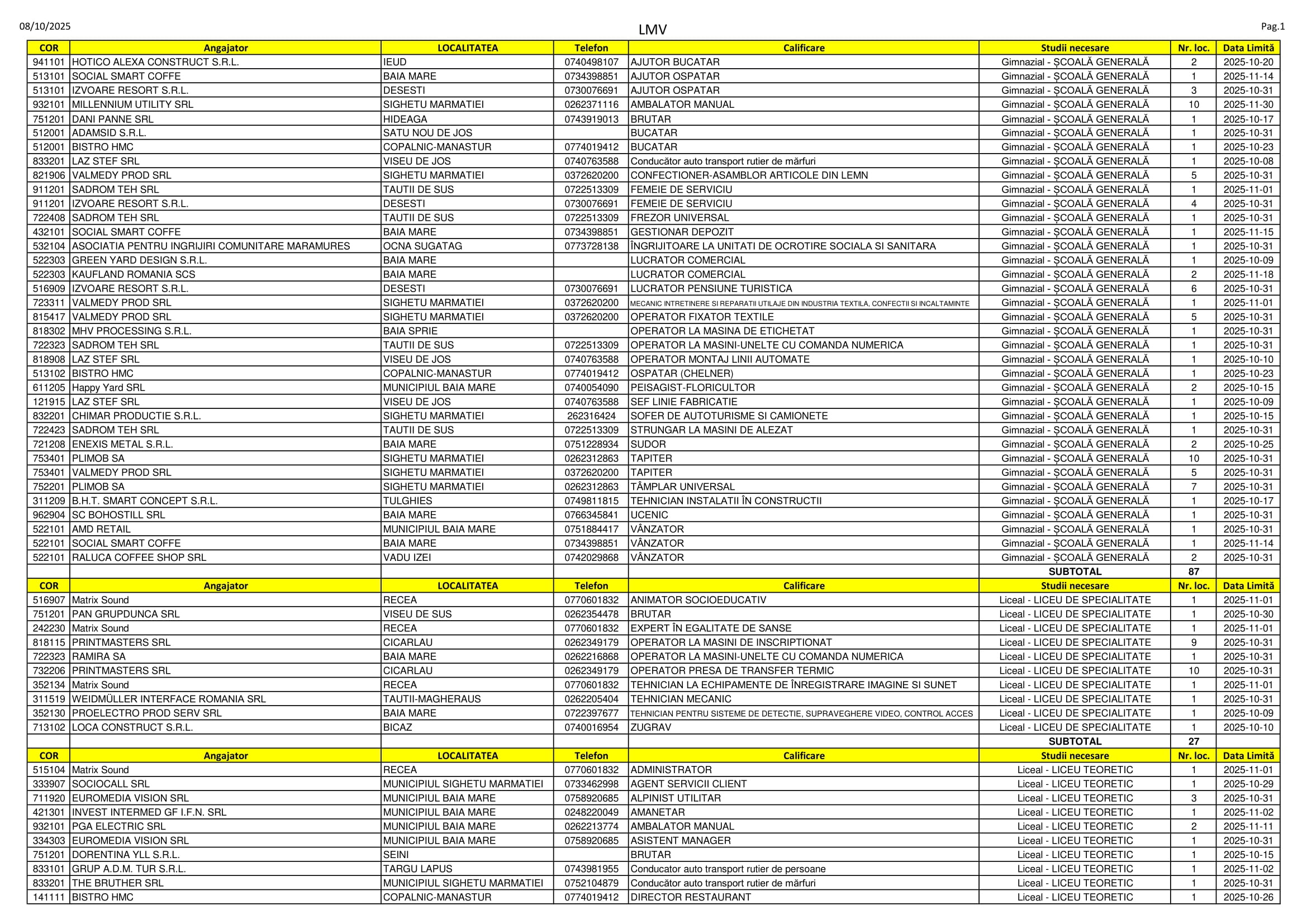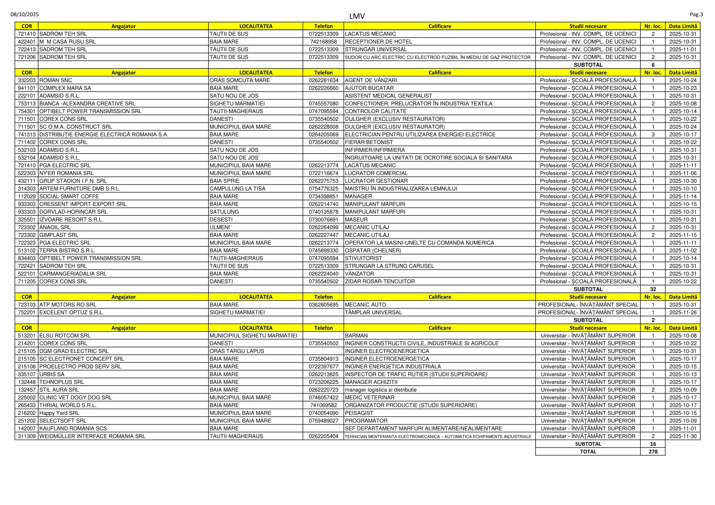 278 de locuri de muncă sunt disponibile în aceste zile pe listele AJOFM Maramureș. Oferta e una variată, se caută de la lucrători în construcții, brutari și vânzători până la peisagiști, medici veterinari și manageri de achiziții. Listele le găsiți mai jos.