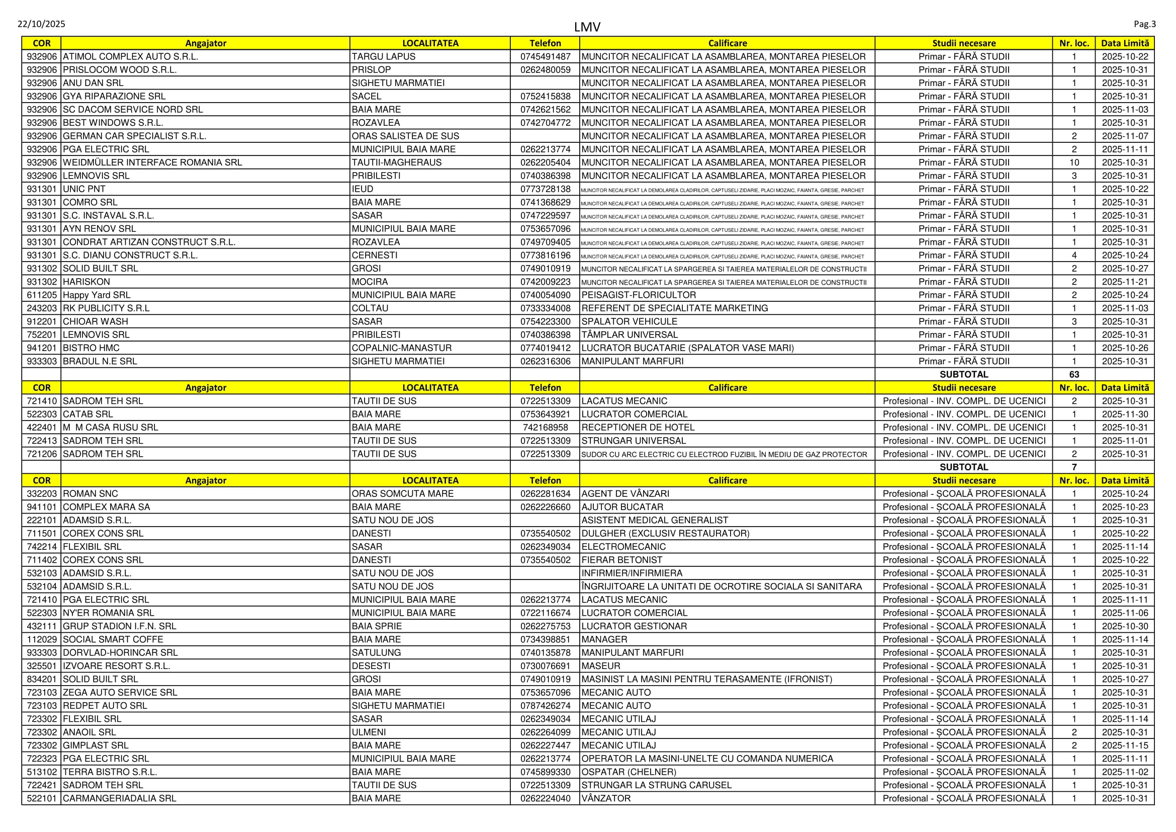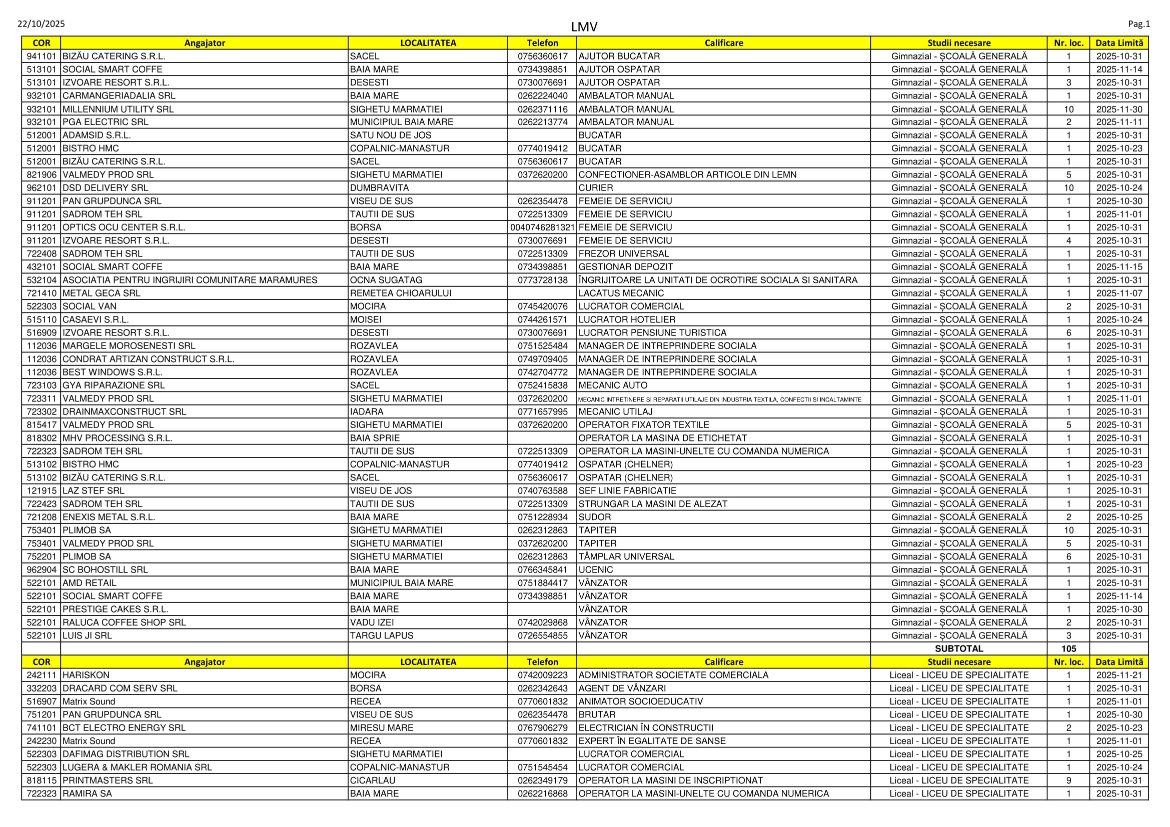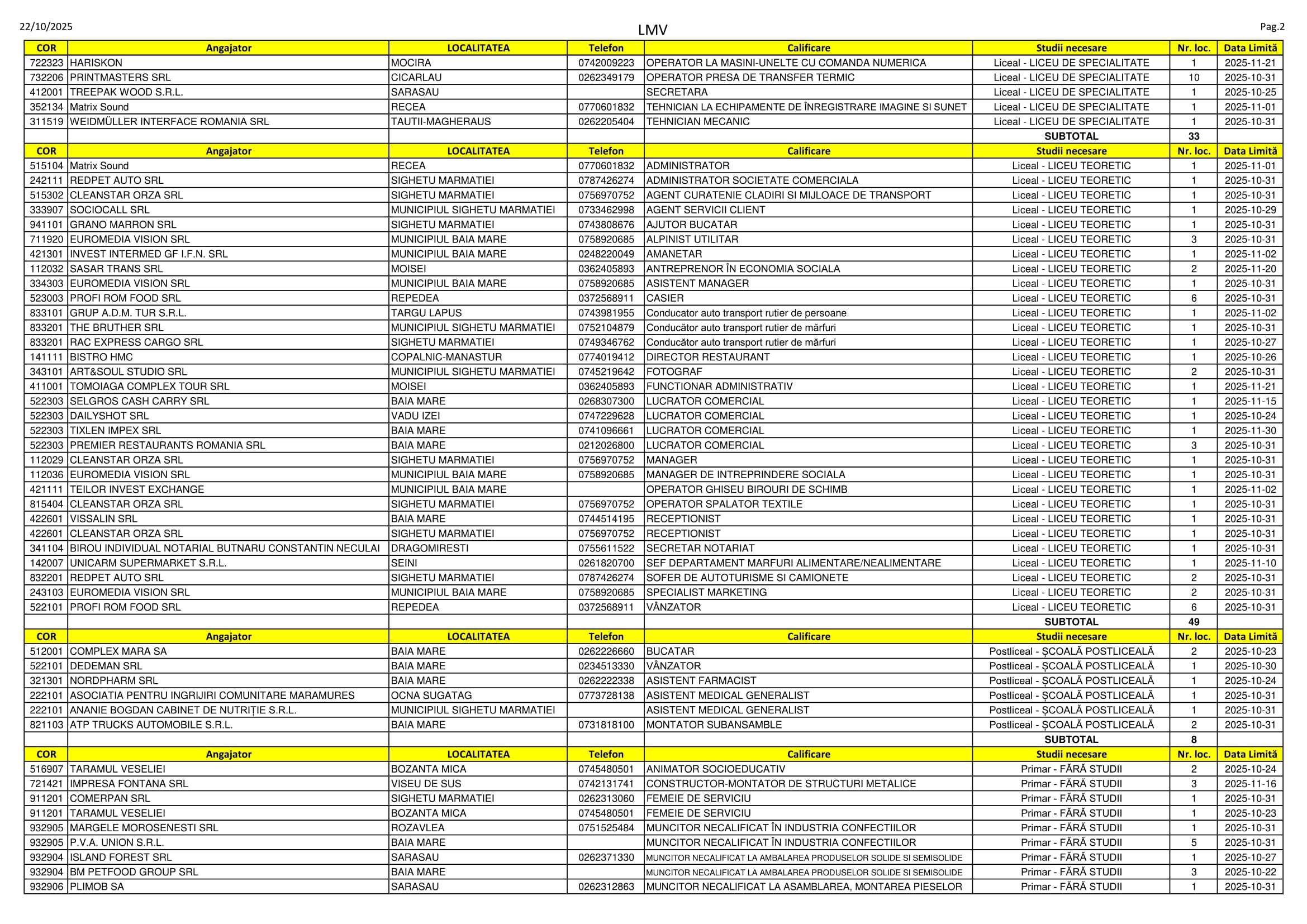 Peste 300 de locuri de muncă sunt disponibile în aceste zile pe listele AJOFM Maramureș. Se caută de la șoferi, lucrători în construcții, strungari și tâmplari până la fotografi, asistenți medicali și ingineri. Listele le puteți consulta mai jos.
