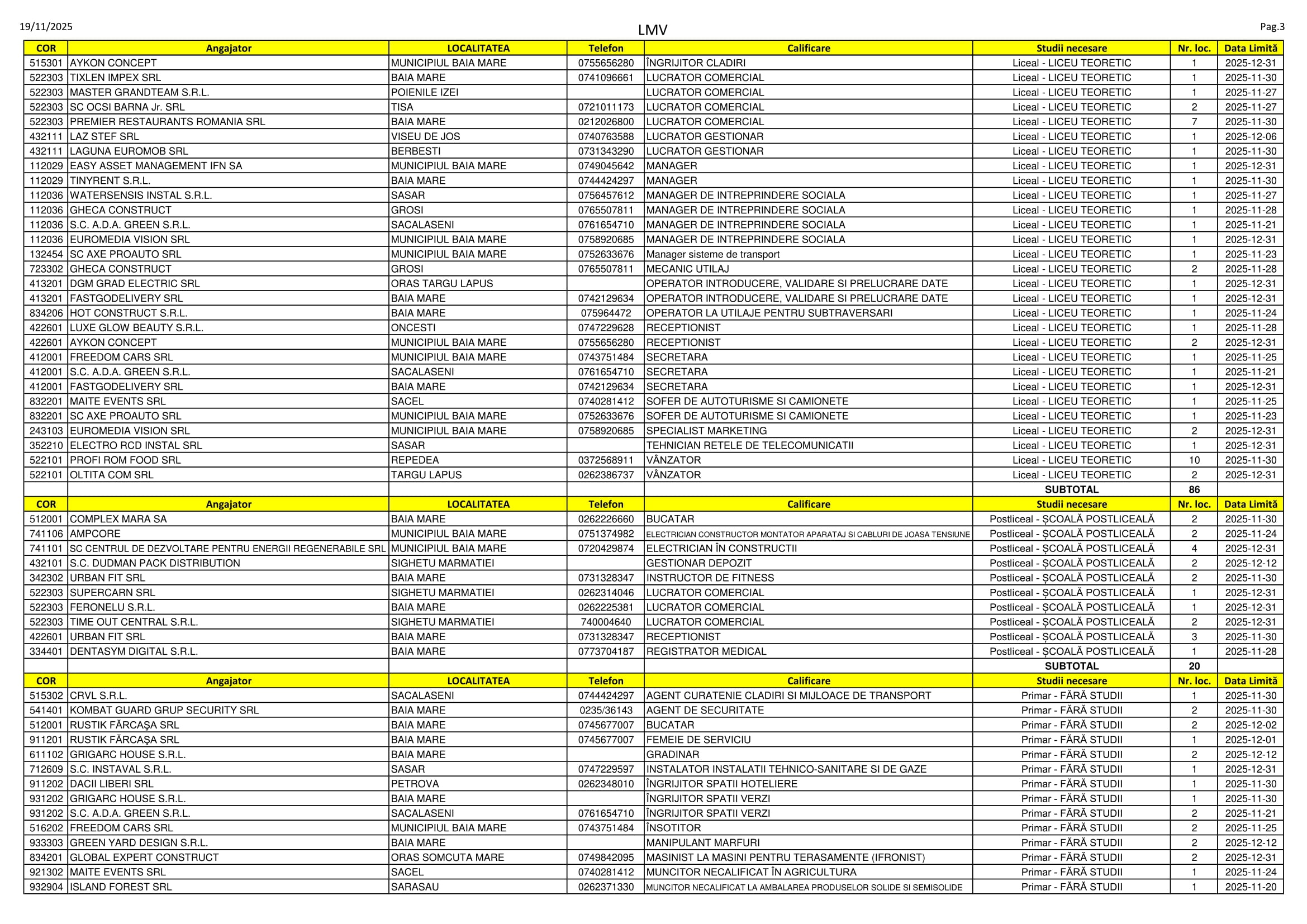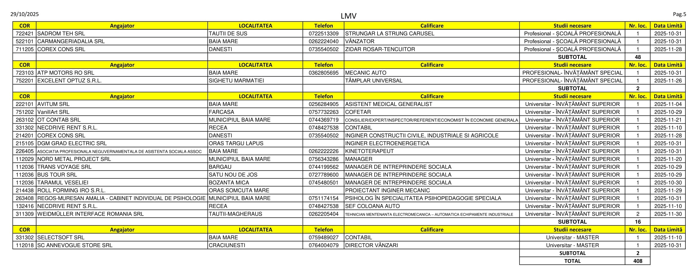 Peste 400 de locuri de muncă sunt disponibile în aceste zile pe listele AJOFM Maramureș. Se caută de la bucătari, secretare, maseuri și tâmplari până la psihologi, kinetoterapeuți, ingineri și contabili. Listele detaliate le găsiți mai jos.