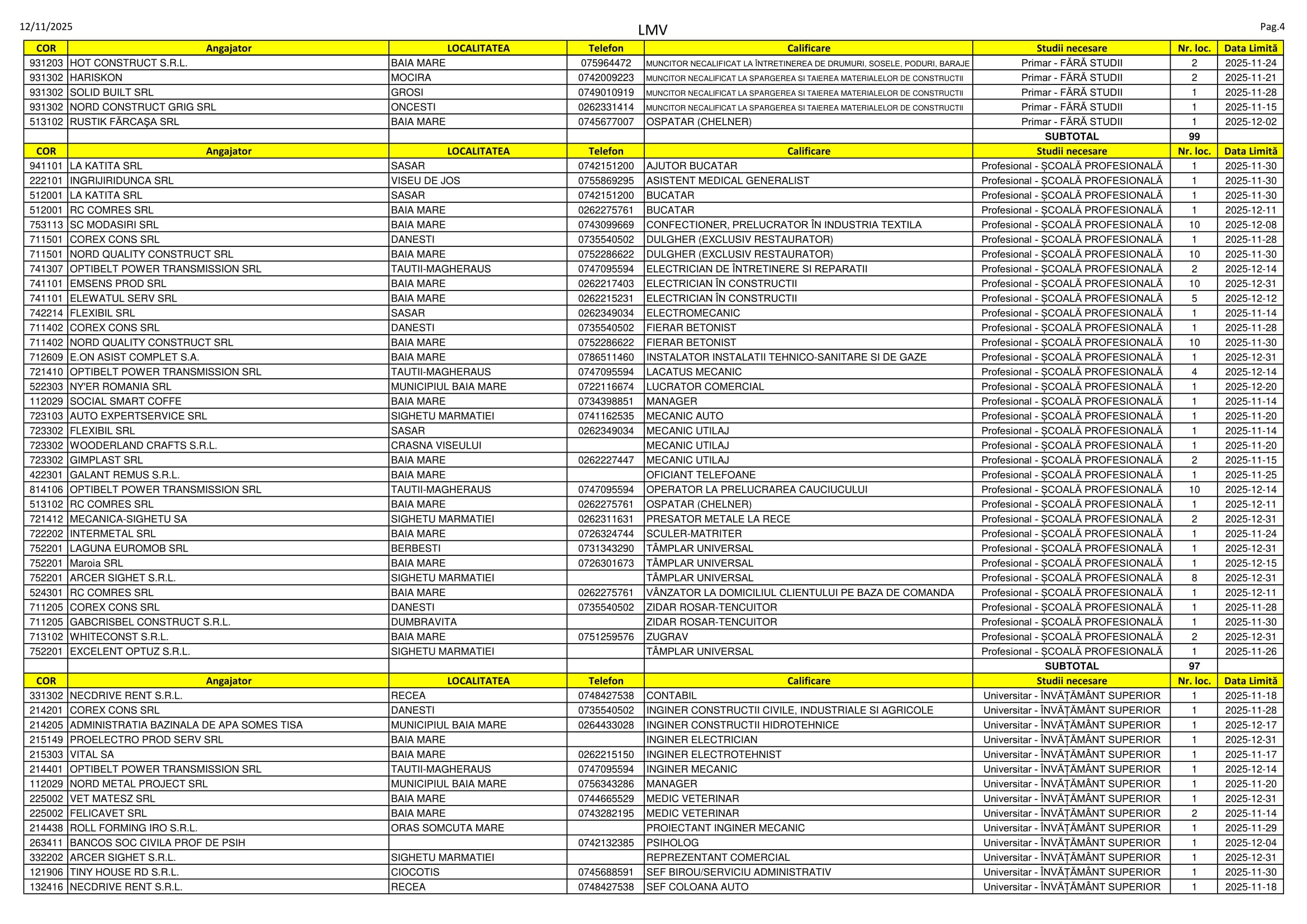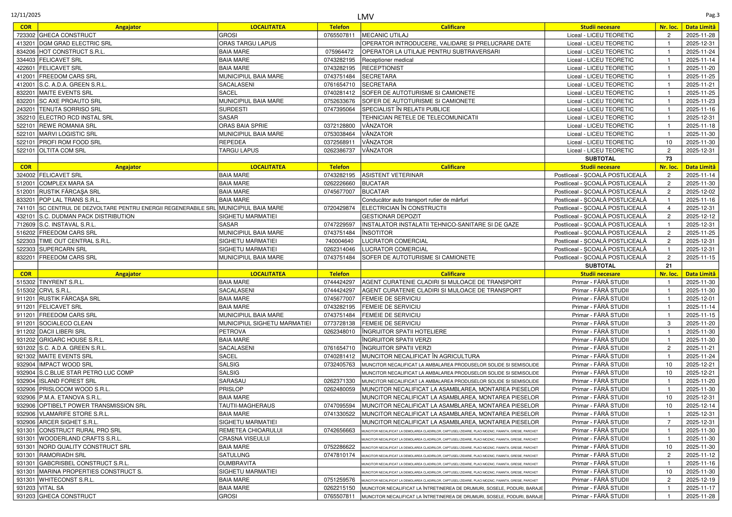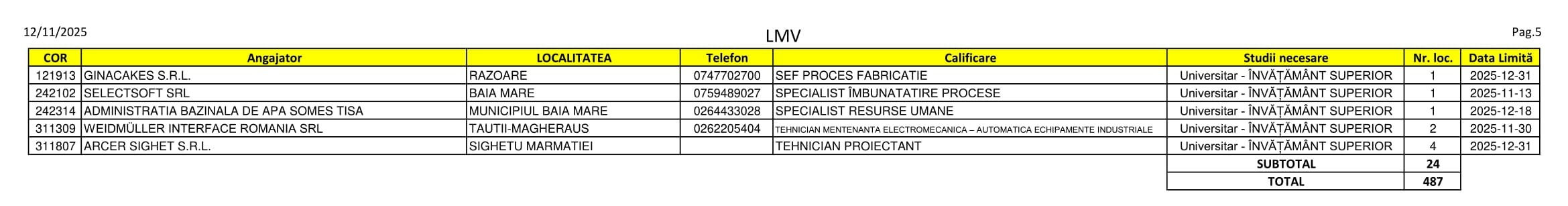 487de locuri de muncă vacante sunt în aceste zile pe listele AJOFM Maramureș. Oferta este una variată: se caută de la șoferi, îngrijitori la domiciliu și muncitori în construcții până la psihologi, specialiști în resurse umane și medici veterinari. Listele le puteți consulta mai jos.
