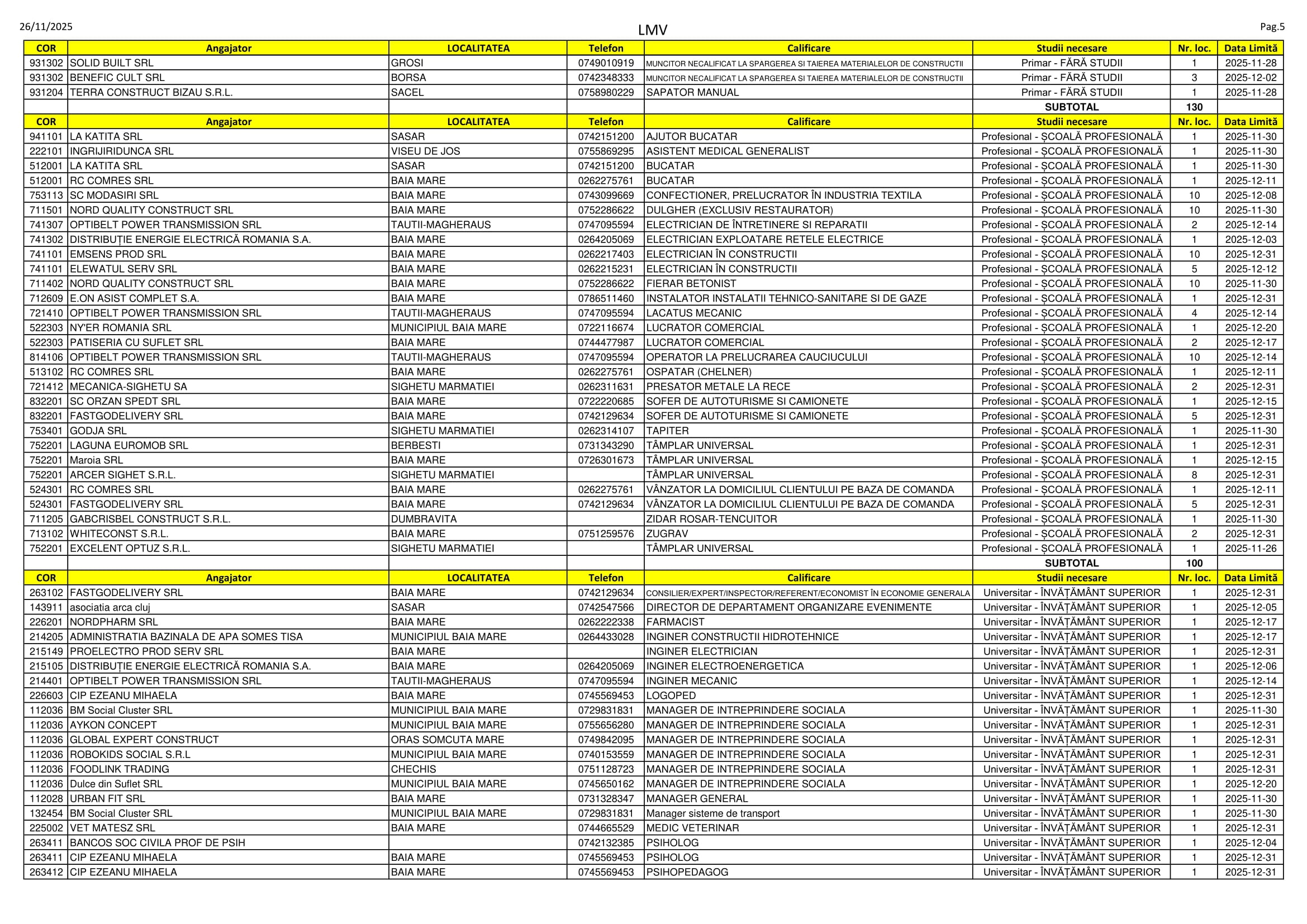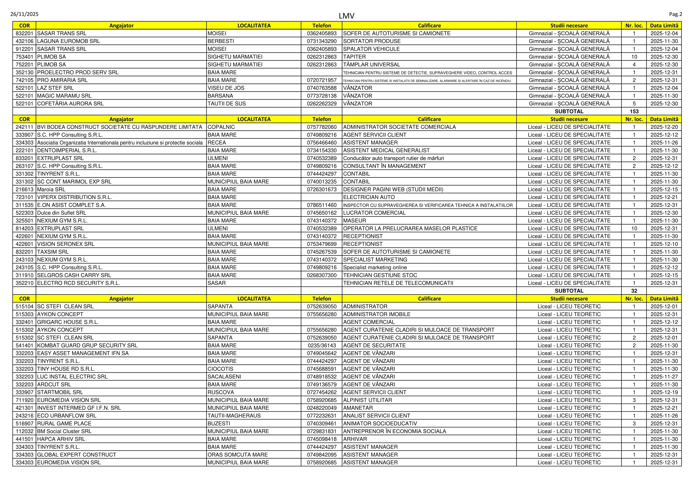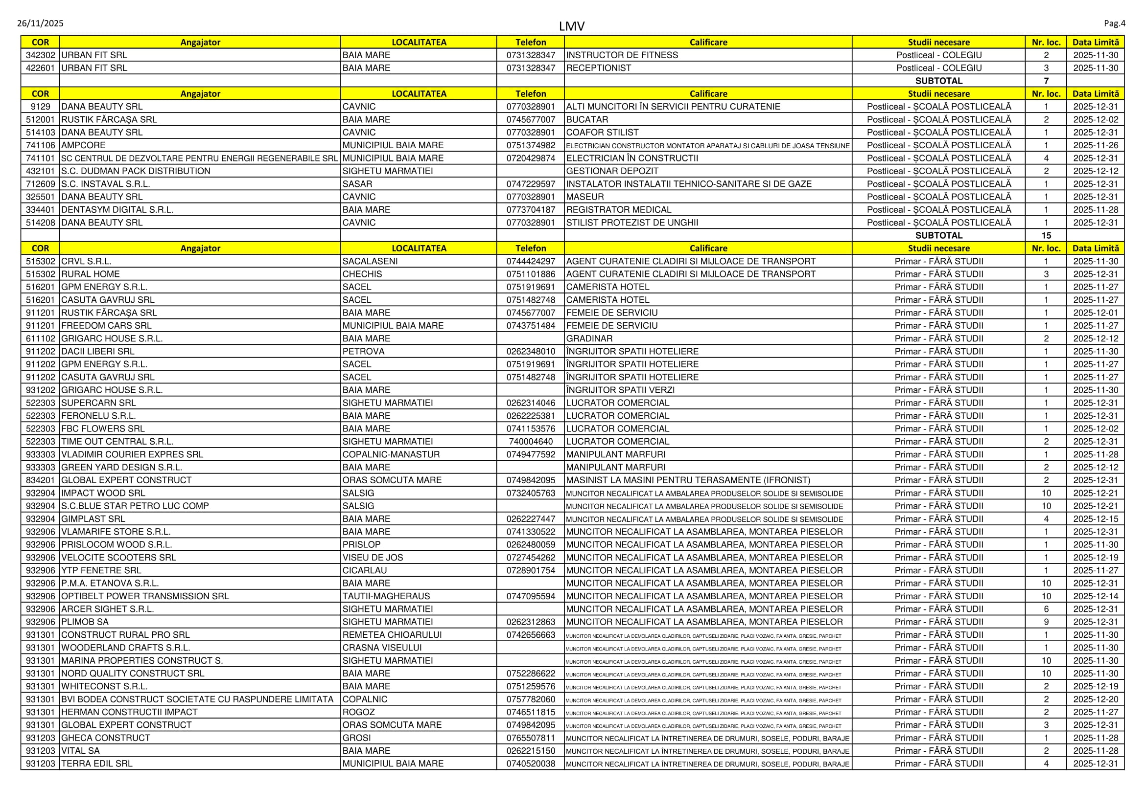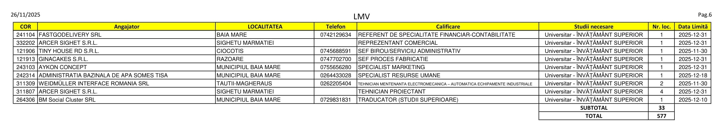 577 de locuri de muncă sunt disponibile în aceste zile pe listele AJOFM Maramureș. Oferta e una variată, se caută de la lucrători în construcții, cameriste, manipulatori de mărfuri, instructori de fitness și maseuri până la specialiști în marketing, traducători și farmaciști. Listele, cu detaliile de rigoare, le puteți consulta mai jos.