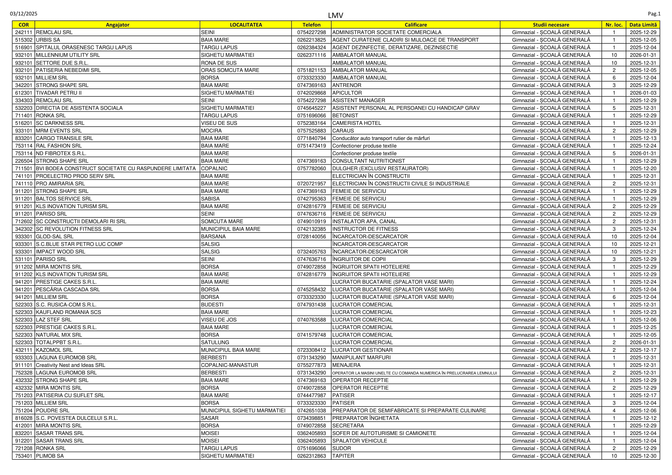 Locuri de muncă în Maramureș