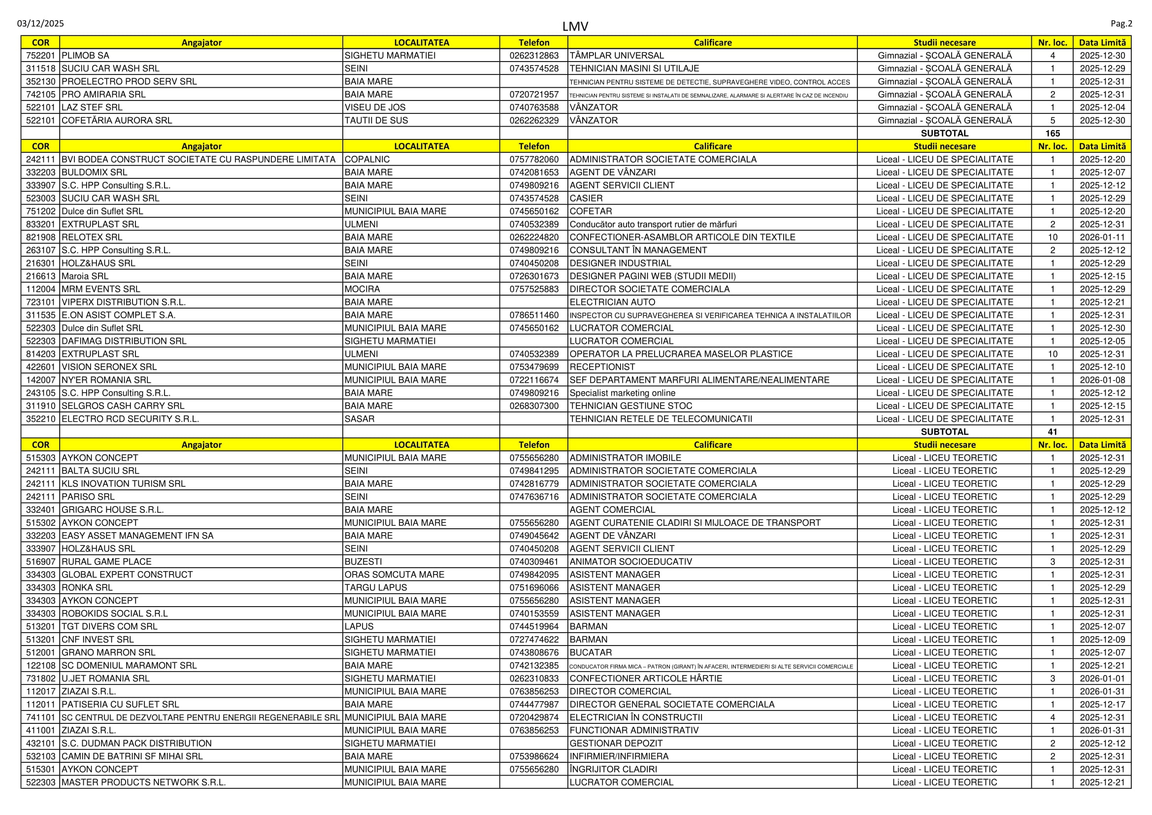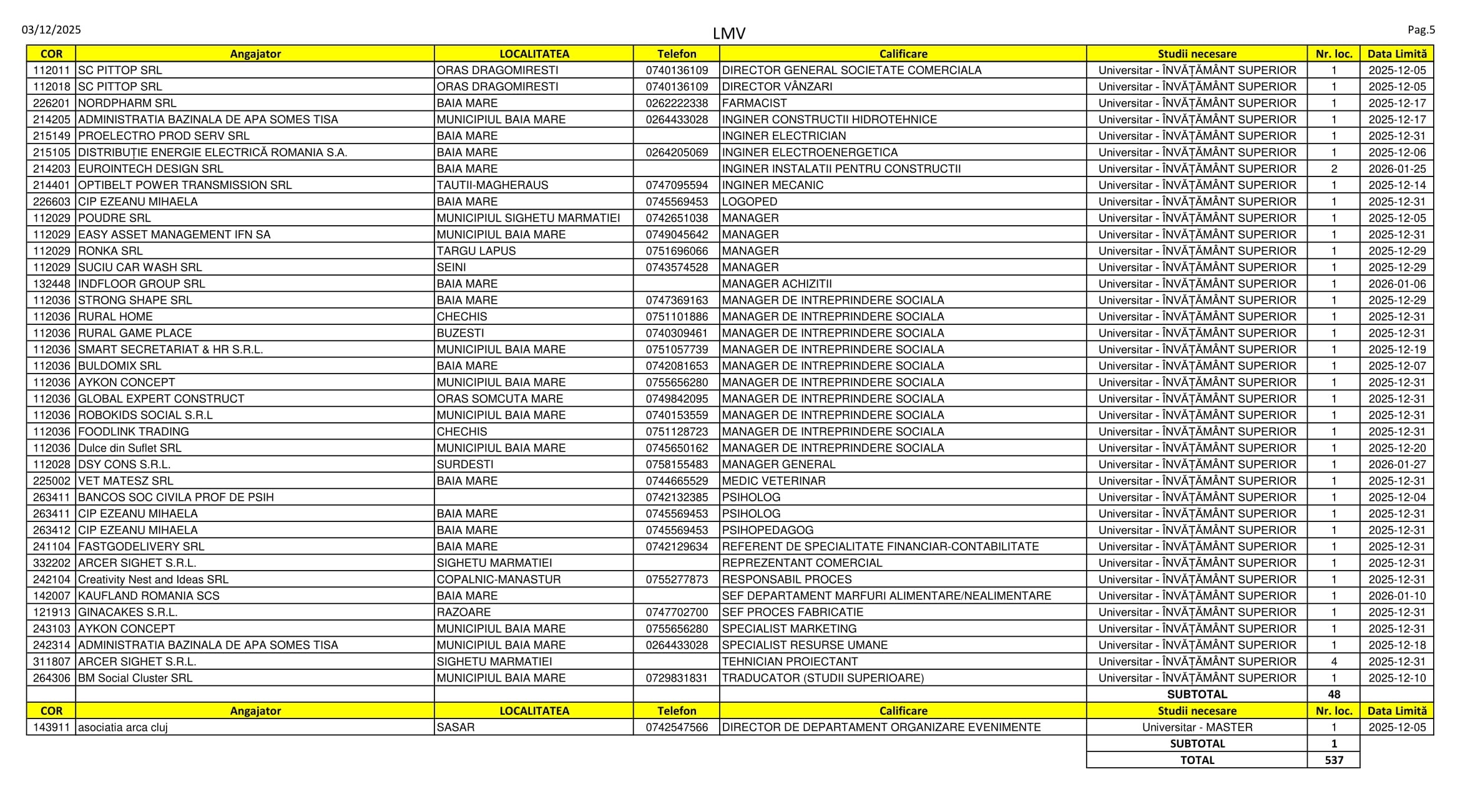 537 de locuri de muncă vacante sunt în aceste zile pe listele AJOFM Maramureș. Oferta este una variată. Se caută de la tâmplari, cofetari și barmani până la medici veterinari, farmaciști, ingineri și specialiști în resurse umane. Listele, cu detaliile de rigoare, le puteți consulta mai jos.