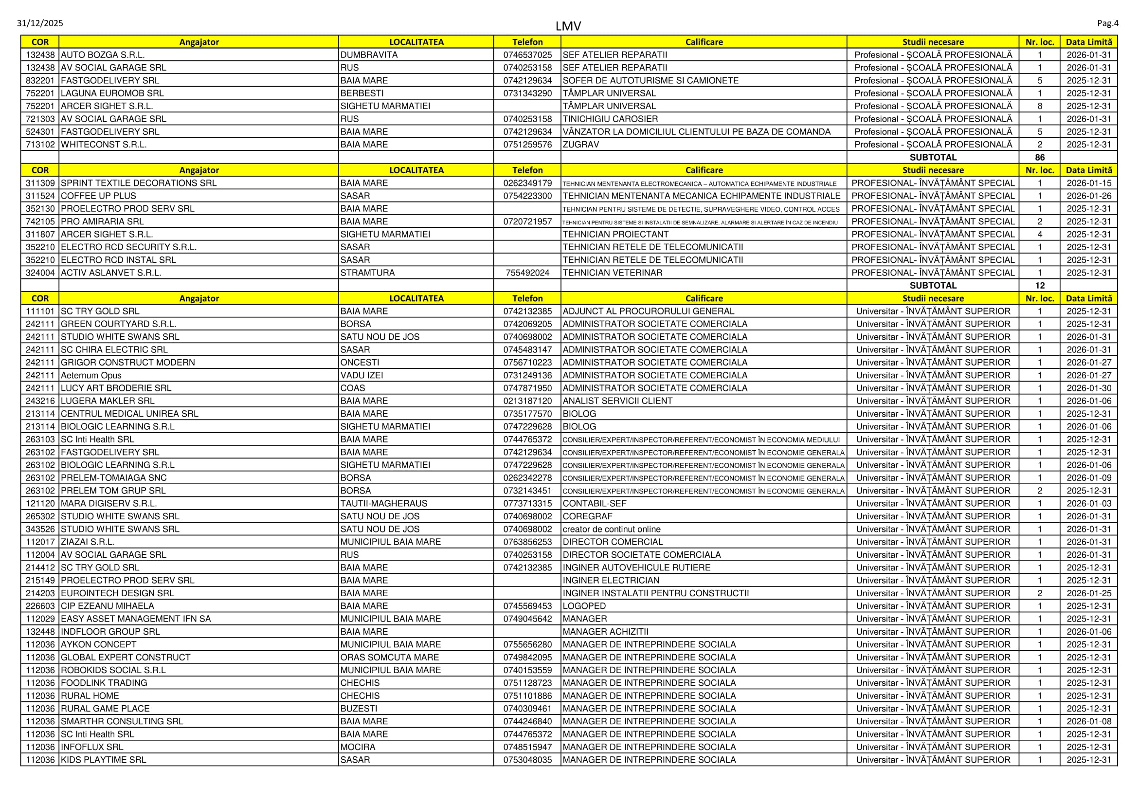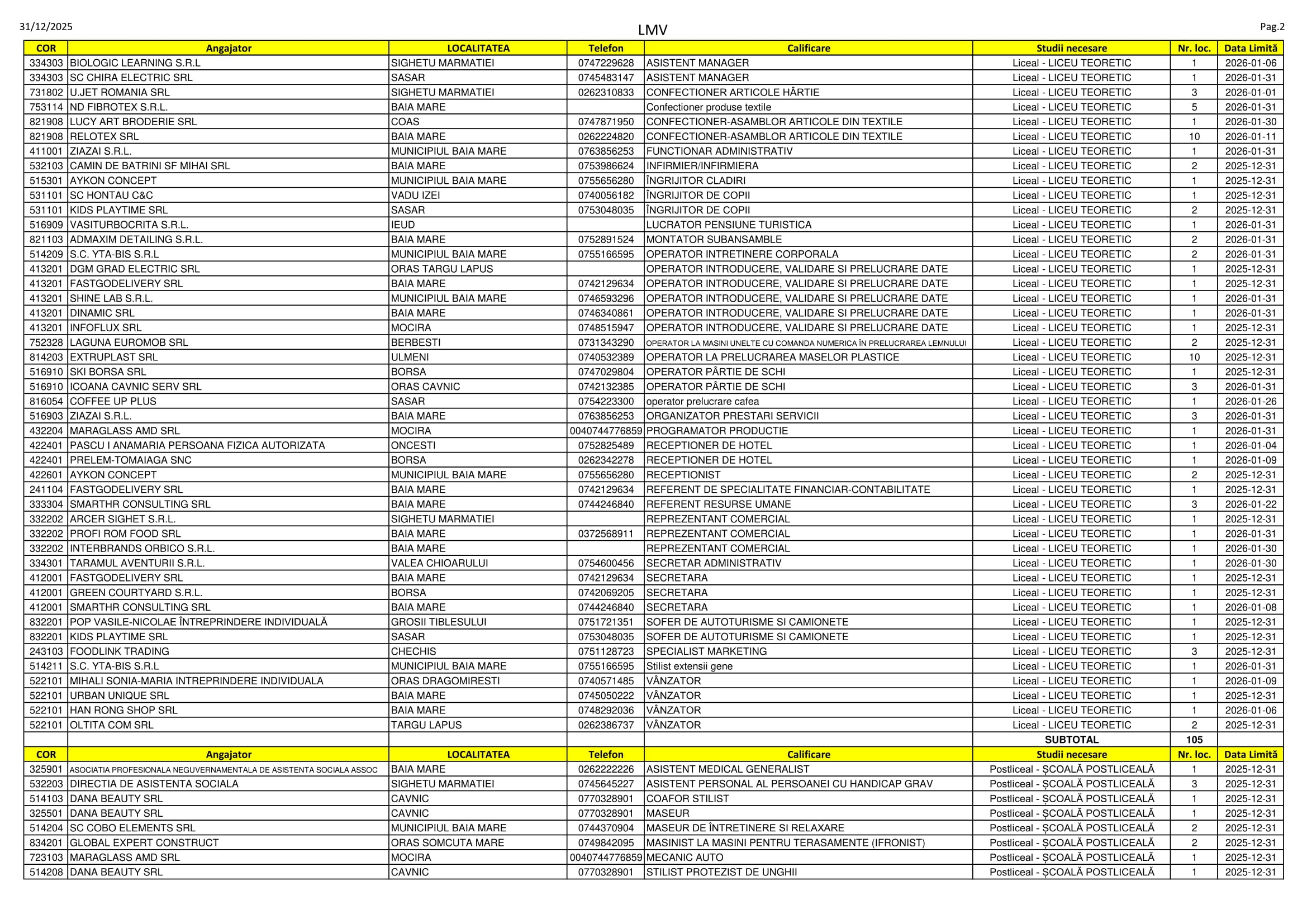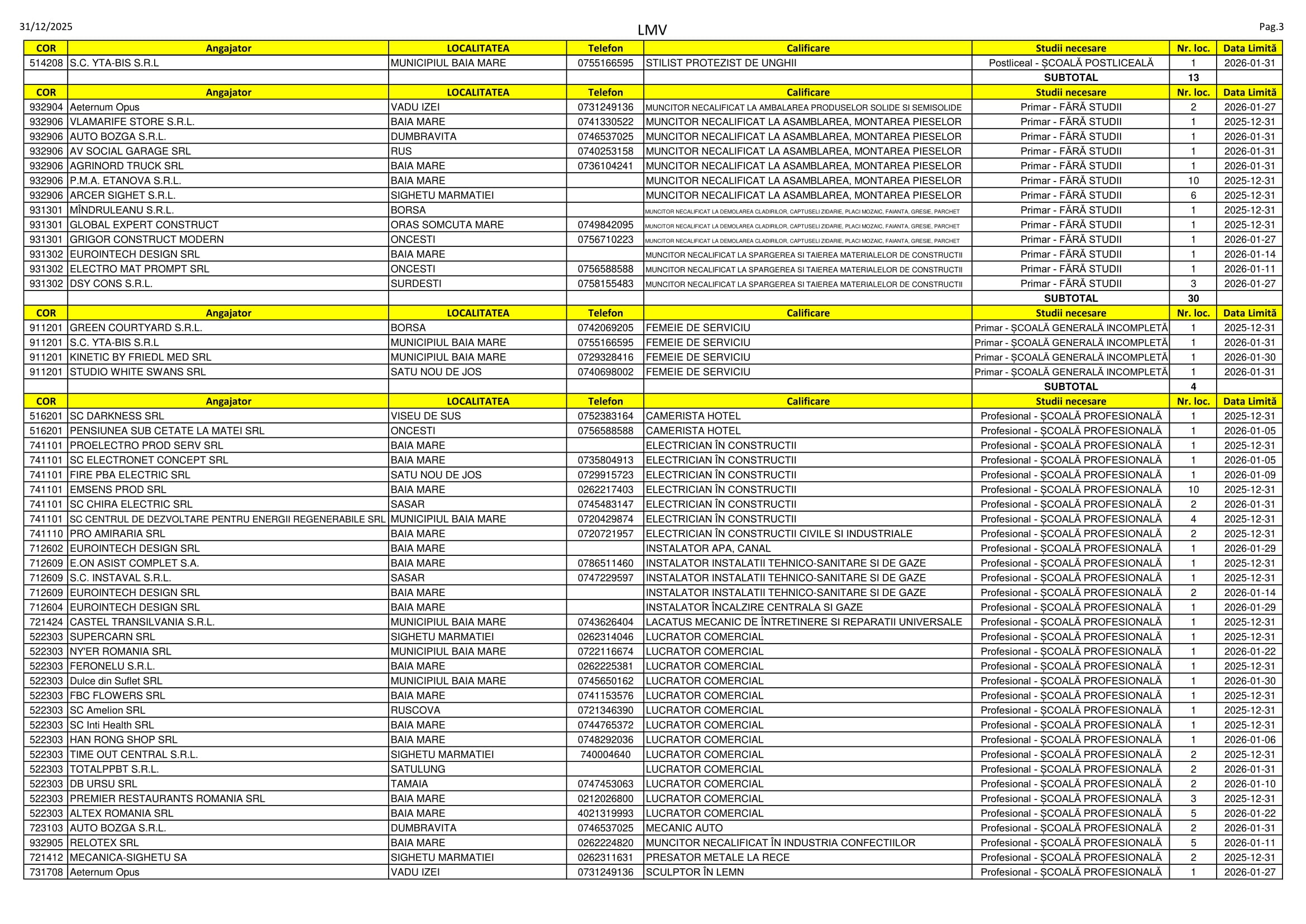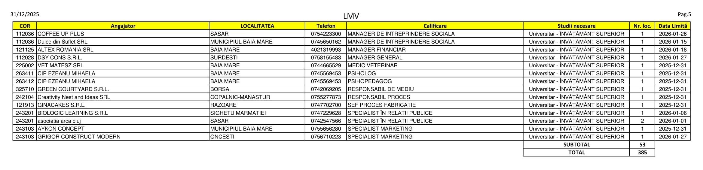 385 de locuri de muncă sunt disponibile în aceste zile pe listele AJOFM Maramureș. Se caută de la menajere, șoferi și lucrători în construcții până la psigologi, veterinari și ingineri. Listele le puteți consulta mai jos.