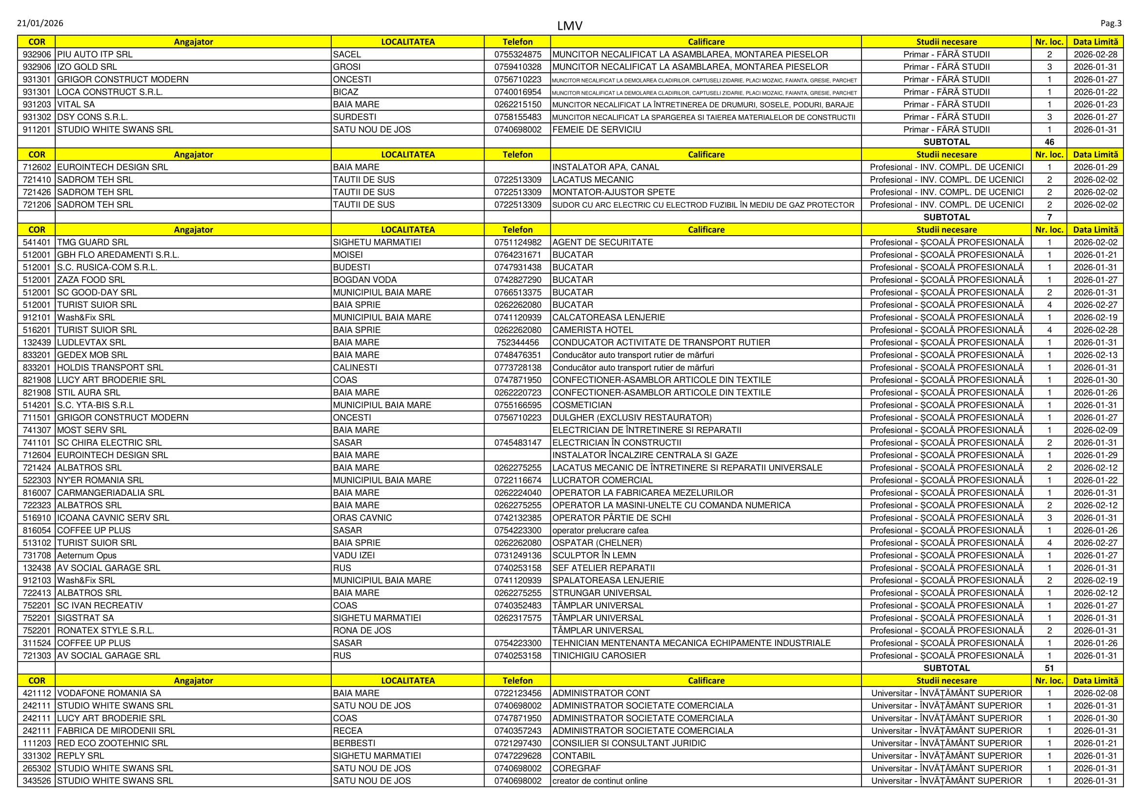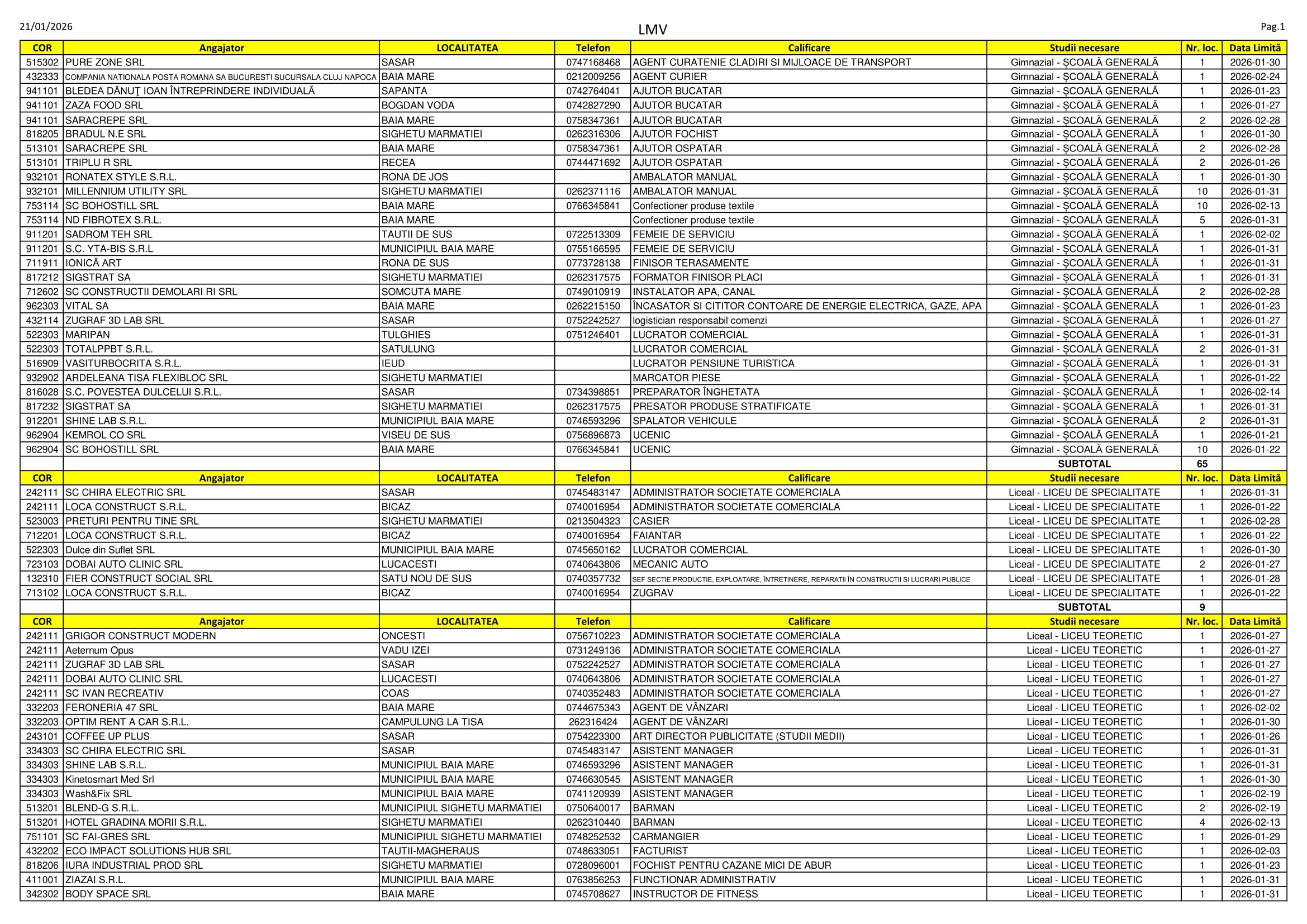 Locuri de muncă în Maramureș - 3 ore în urmă