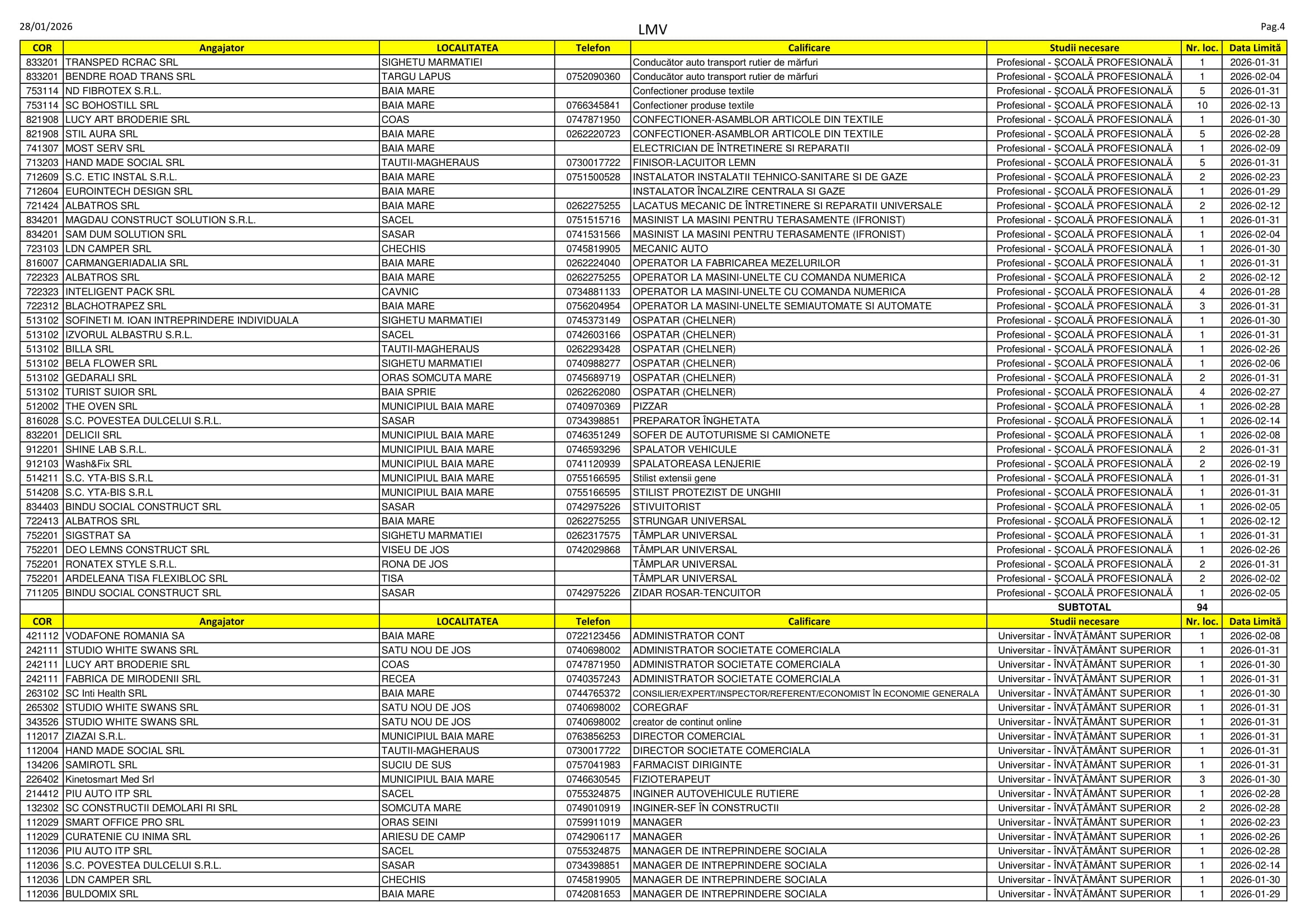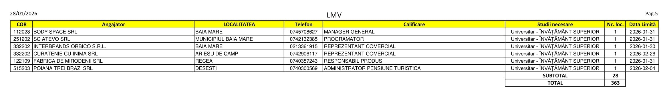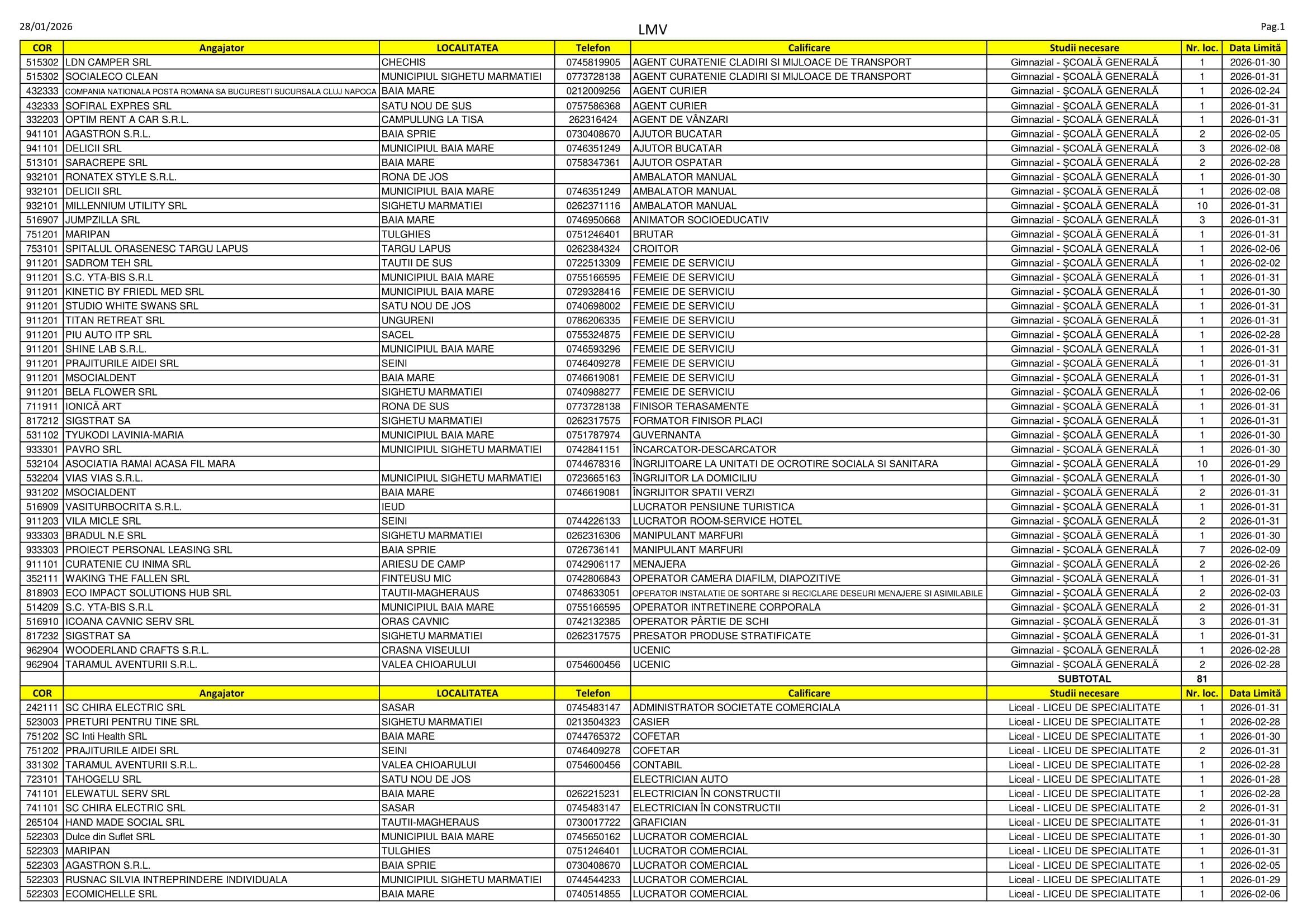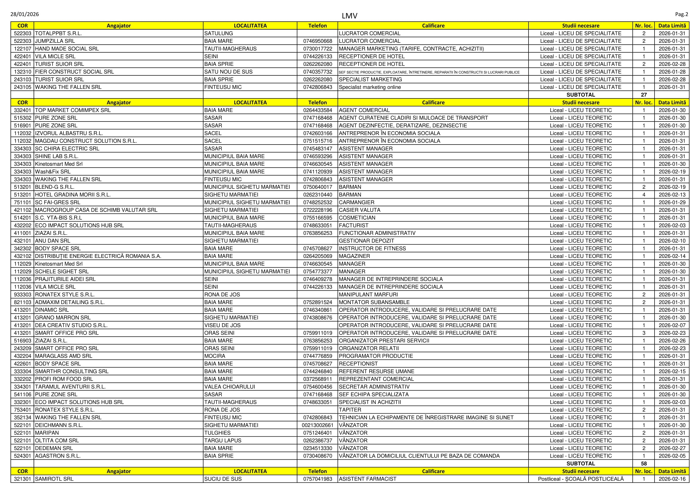 Peste 360 de locuri de muncă disponibile se regăsesc în aceste zile pe listele AJOFM Maramureș. Despre ofertă se poate spune că este una variată: se caută de la electricieni, bucătari și graficieni până la administrator de pensiune, ingineri și manageri de întreprindere socială. Listele le puteți consulta mai jos.