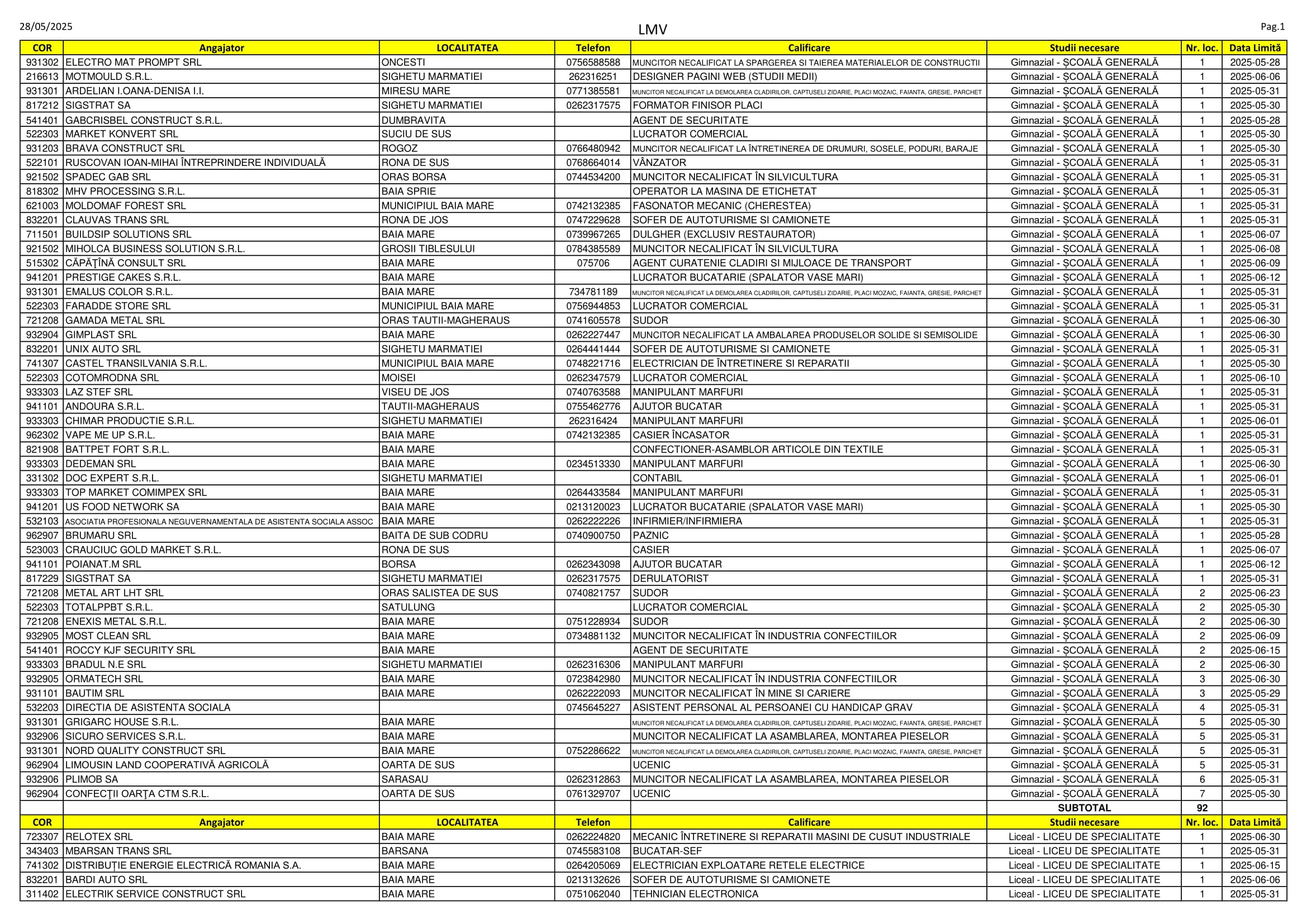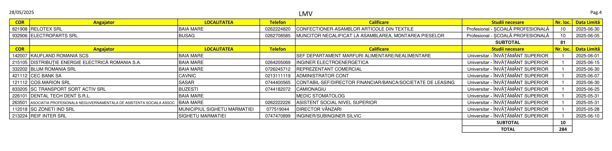 284 de locuri de muncă sunt disponibile pe listele AJOFM Maramureș. Se caută de la curieri, brutari și cameriste până la ingineri, administratori de cont și stomatologi. Listele cu locurile de muncă vacante le puteți consulta mai jos.