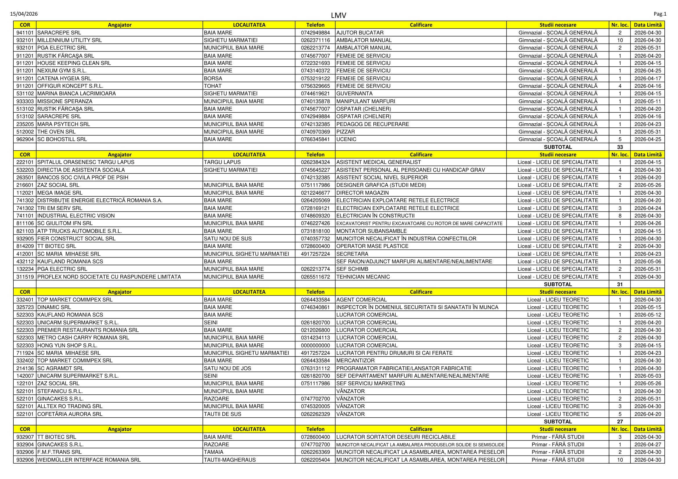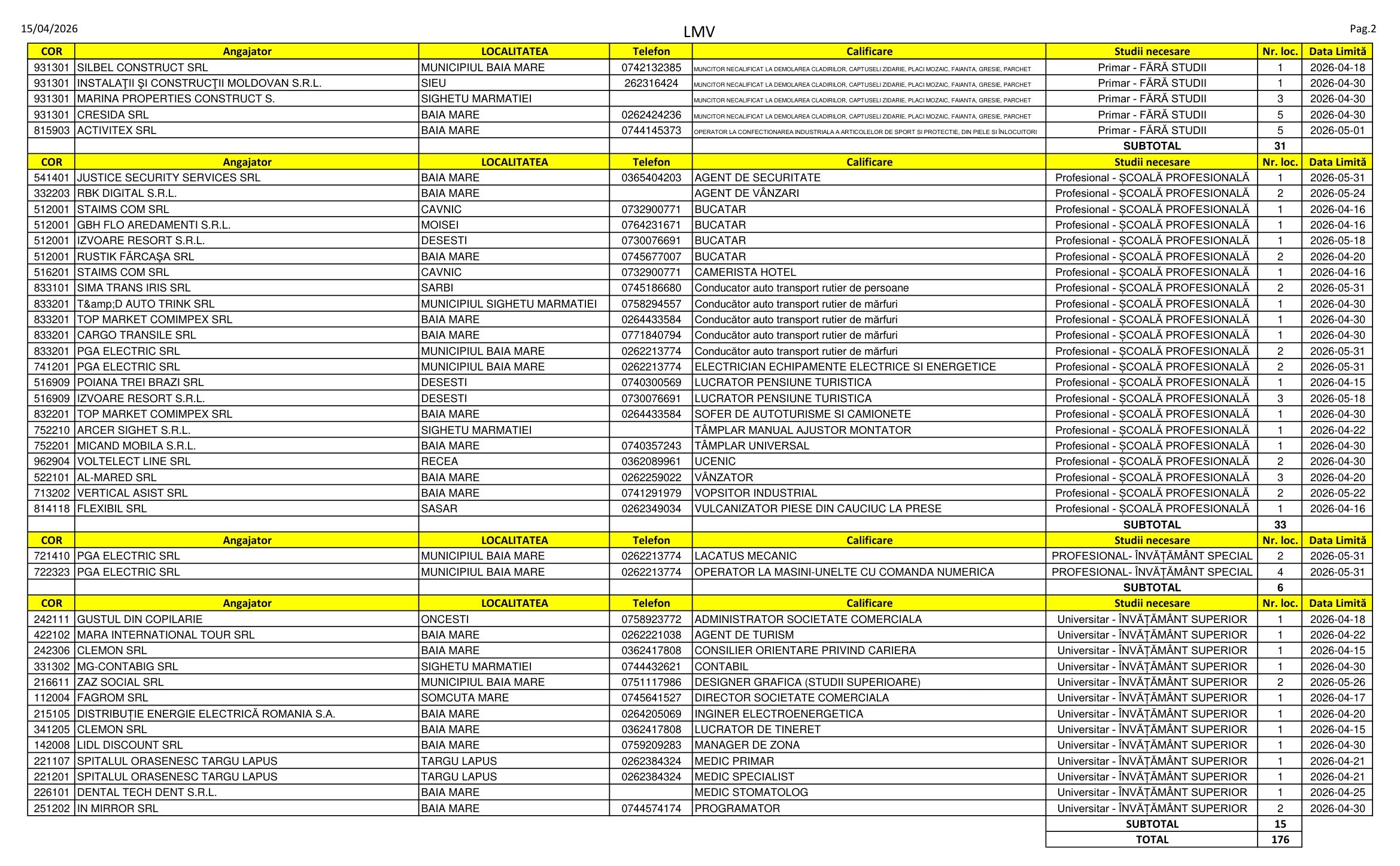 176 de locuri de muncă vacante sunt pe listele AJOFM Maramureș în aceste zile. Se caută de la lăcătuși, bucătari, cameriste și șoferi până la medici, programatori și lucrători de tineret. Listele le puteți consulta mai jos.