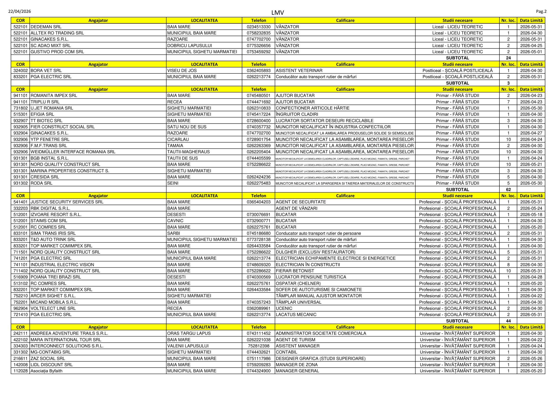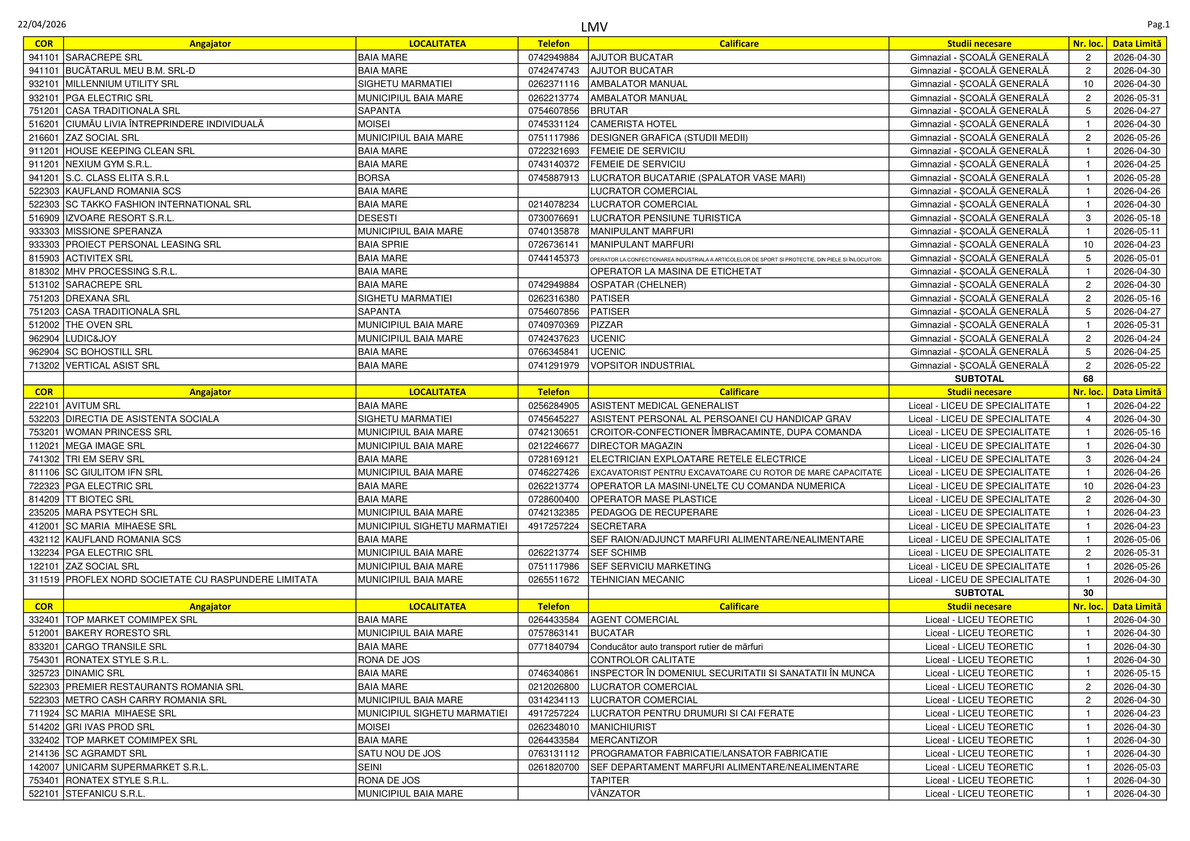 Locuri de muncă în Maramureș - 1 oră în urmă