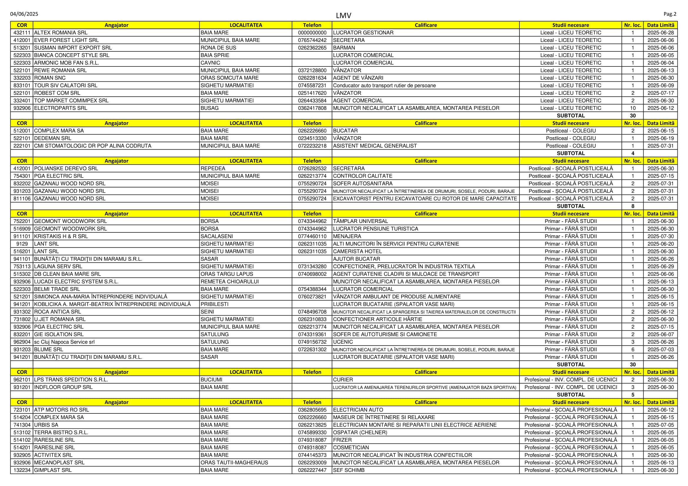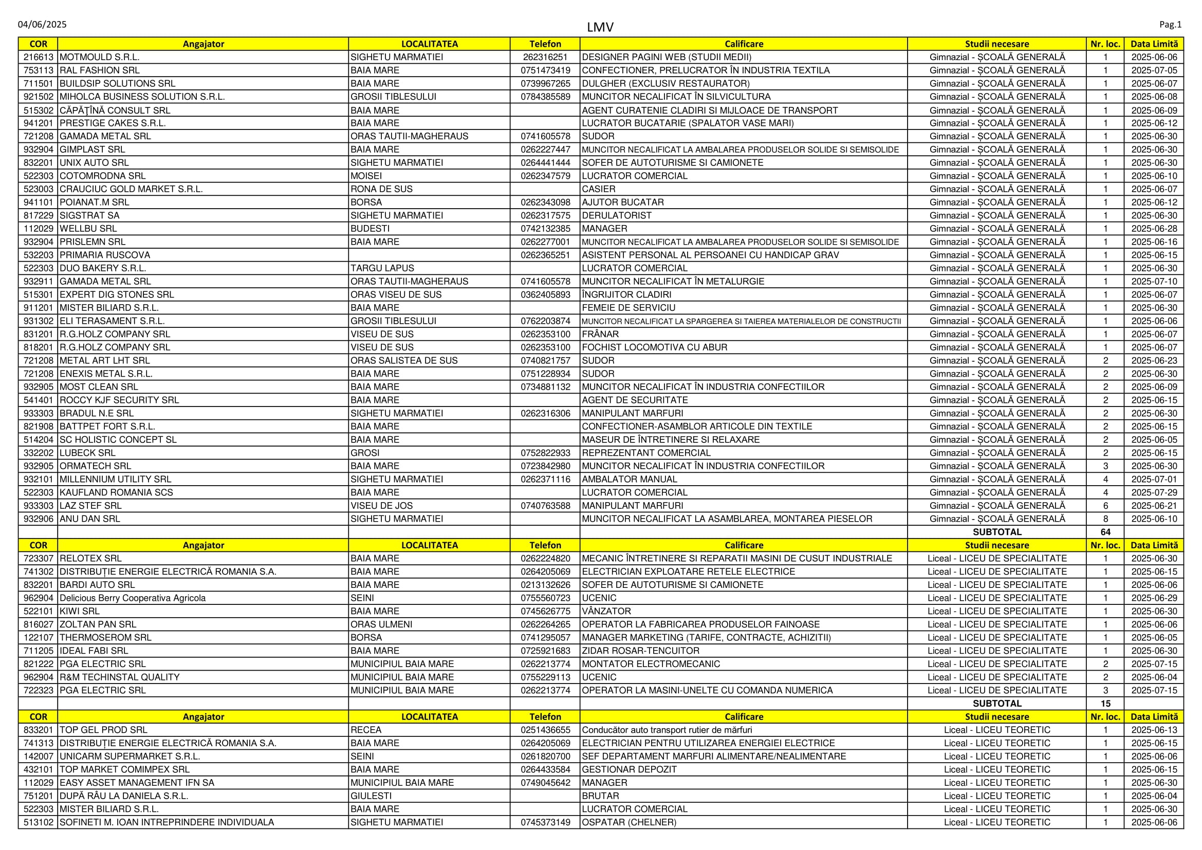 Locuri de muncă în Maramureș - 1 oră în urmă