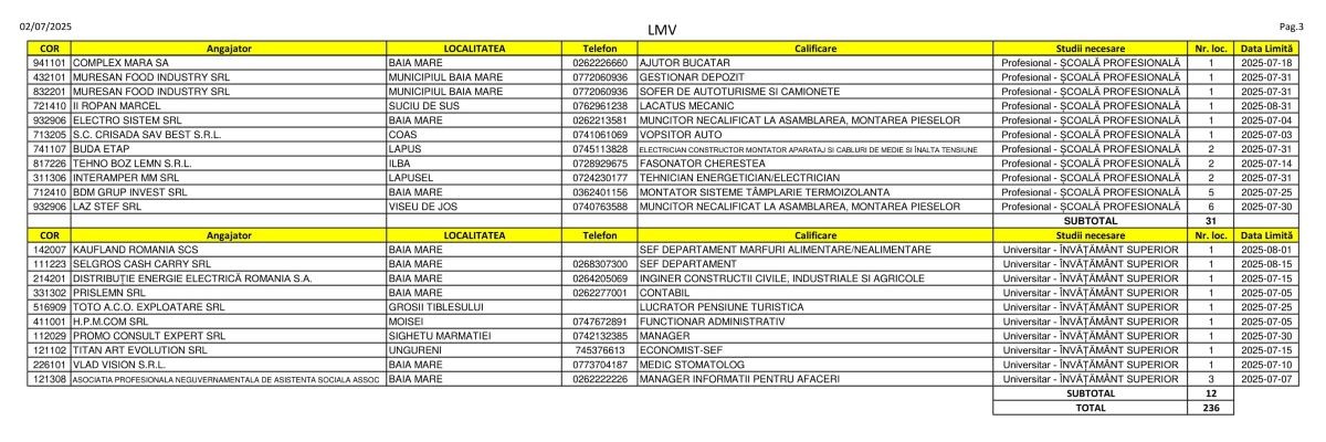Pe listele AJOFM Maramureș se regăsesc, în aceste zile, 236 de locuri de muncă vacante. Se caută de la vânzători, lăcătuși și asistenți personali până la gestionari, stomatologi și șefi de departamente. Amănunte puteți afla consultând listele de mai jos.