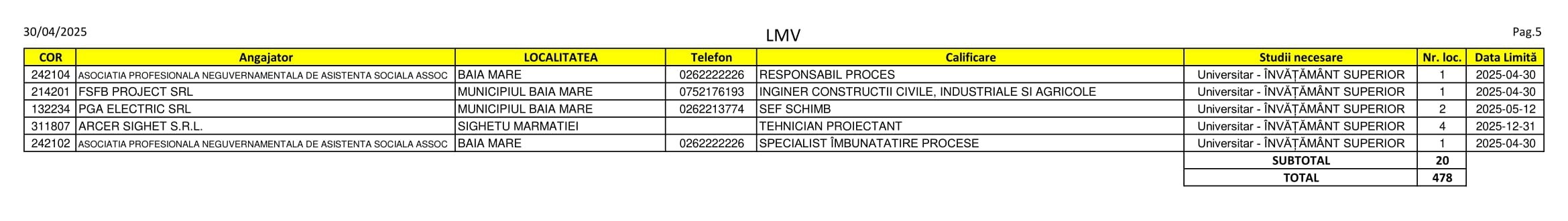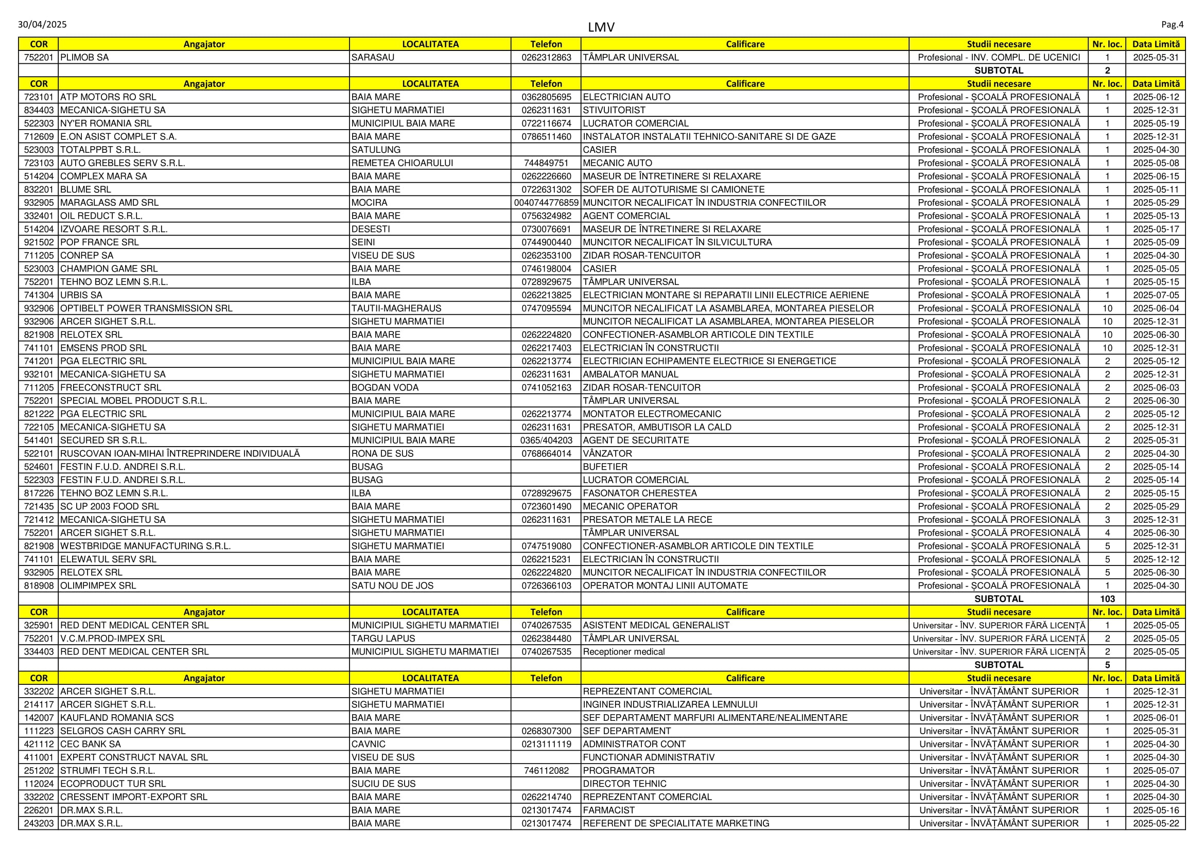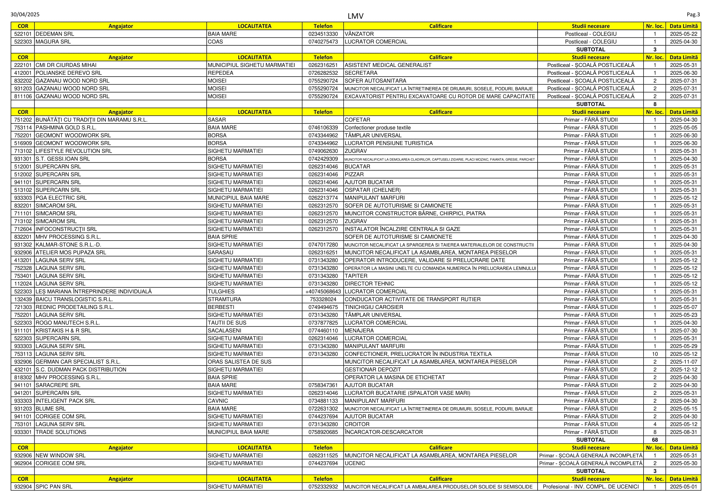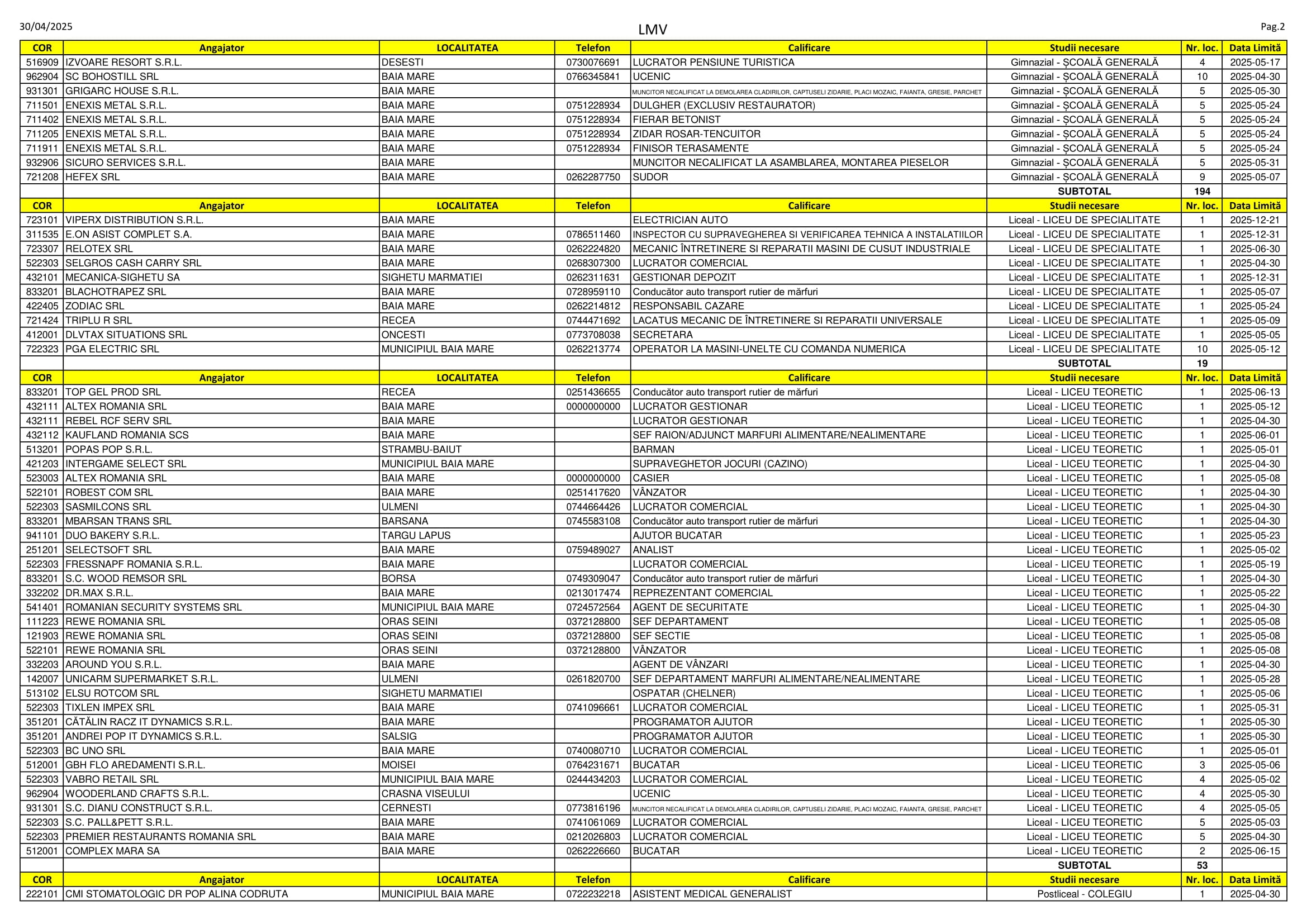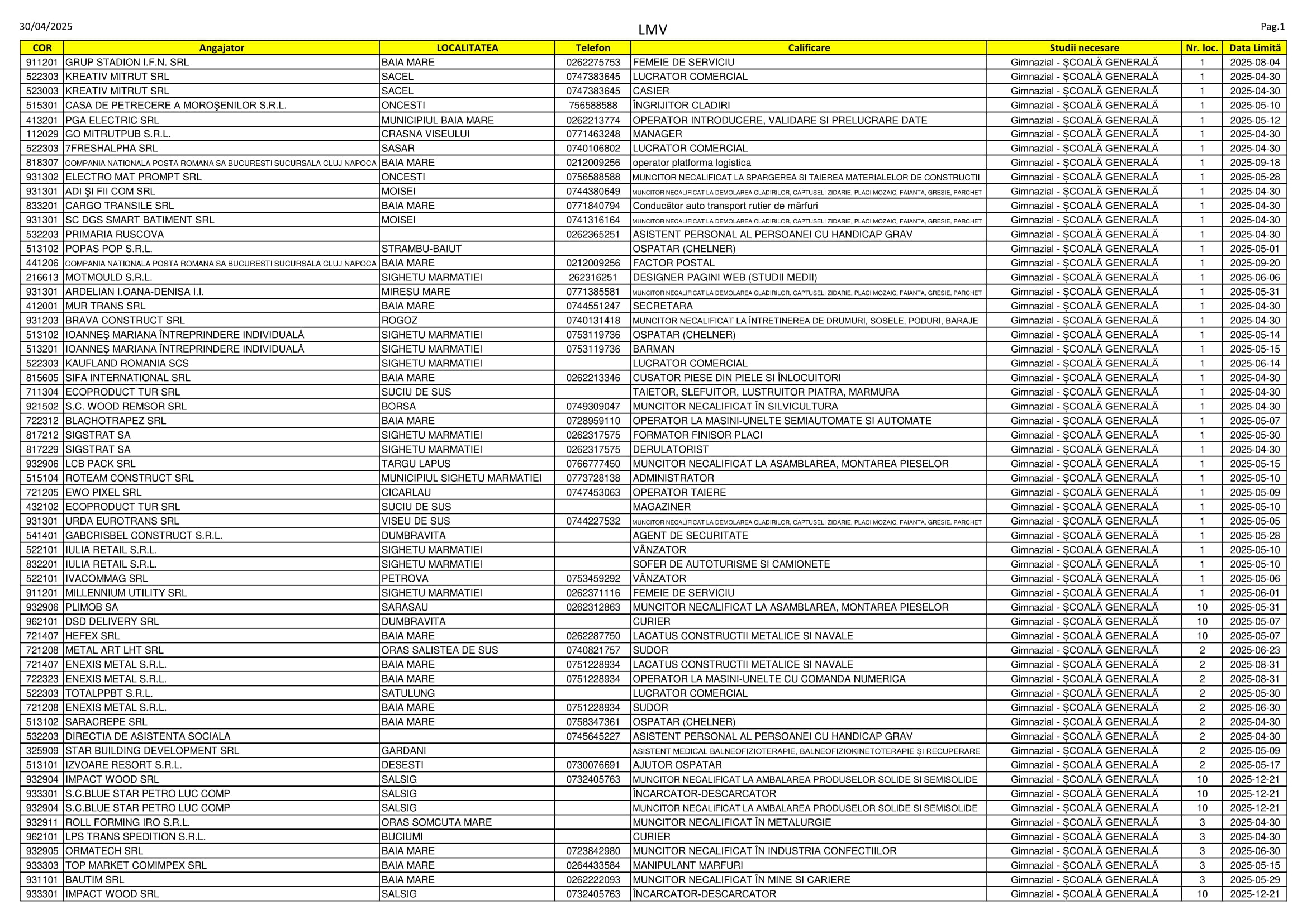 Aproape 480 de locuri de muncă sunt disponibile în aceste zile pe listele AJOFM Maramureș. Se caută de la vânzători, secretare și lucrători în pensiuni până la funcționari, farmaciști și ingineri. Listele le puteți consulta mai jos.